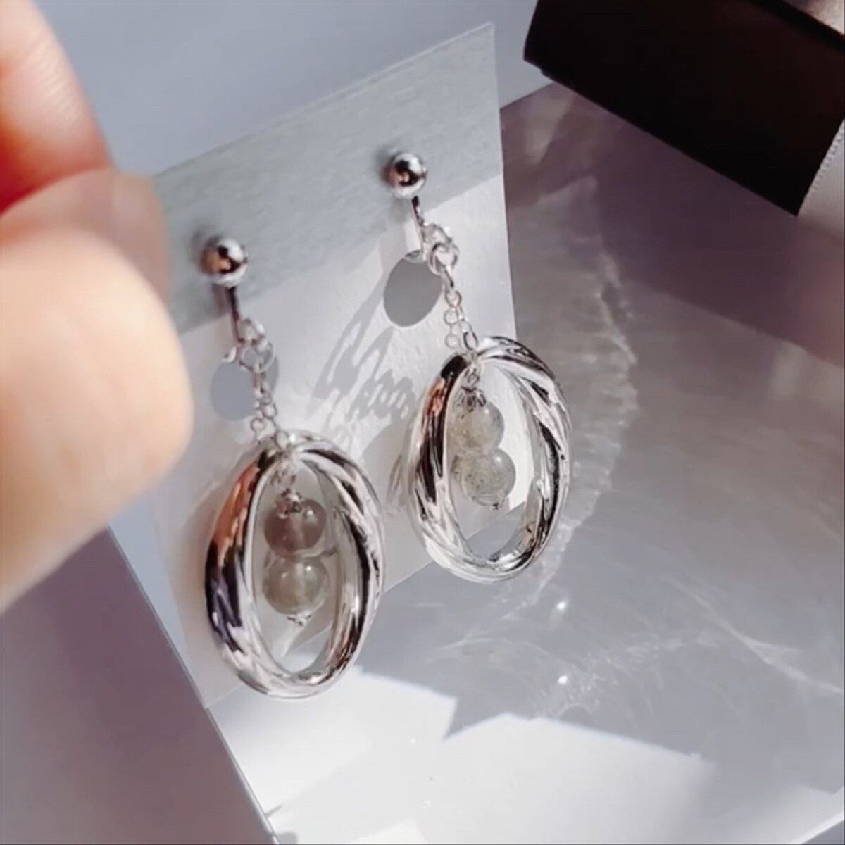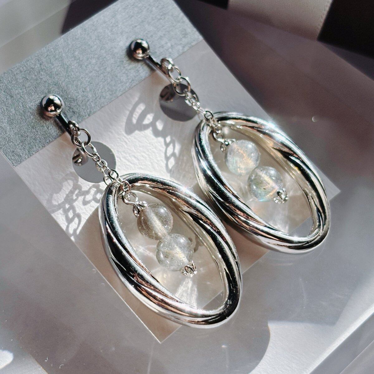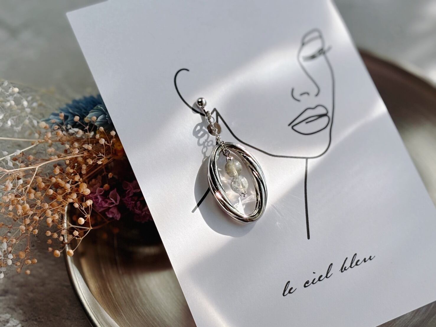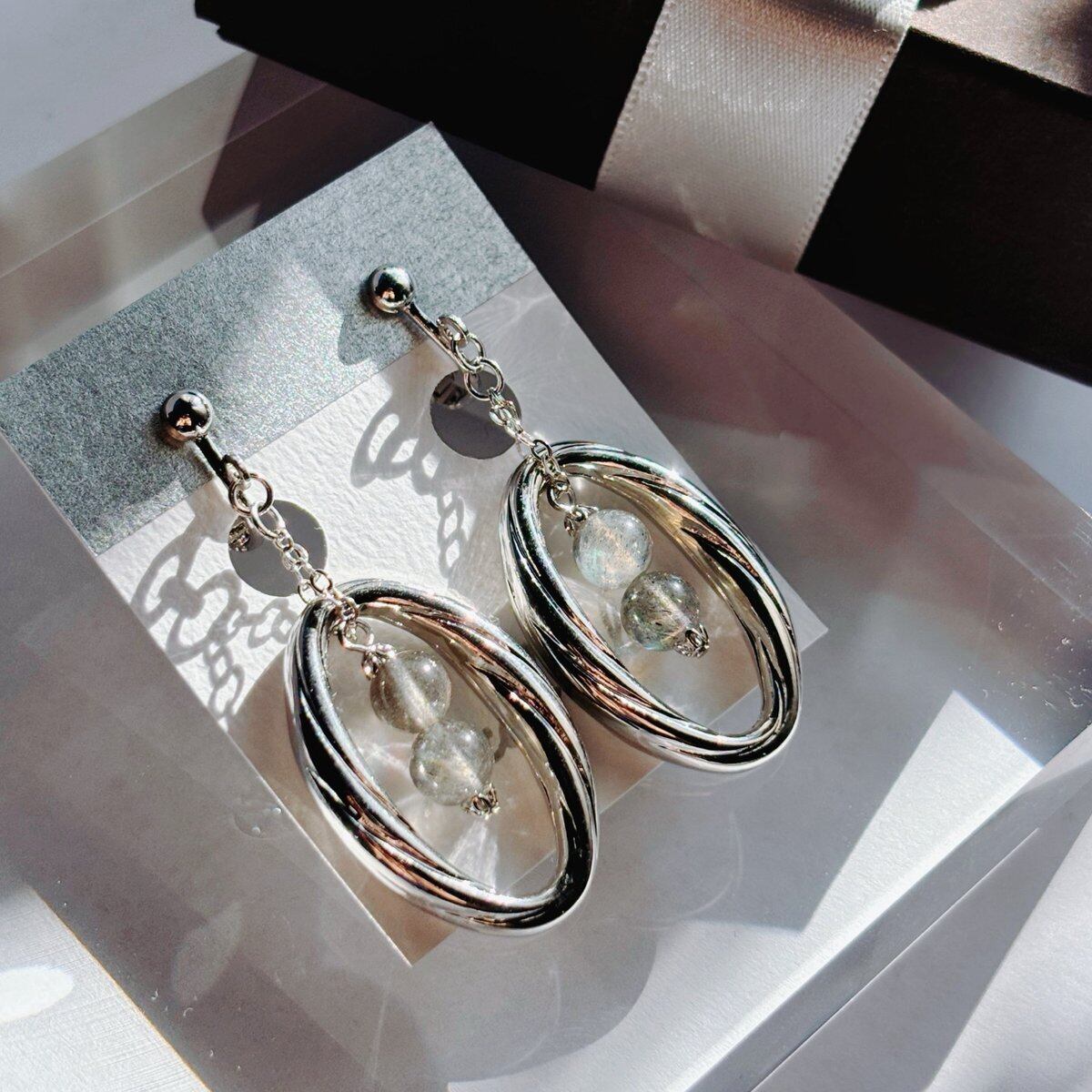 大人の女性にふさわしい「少しの華やかさ」が感じられるこのイヤリングは、カジュアルはもちろん、シックな装いにもぴったり。ラブラドライトの不思議な色味が耳元で揺れ、美しい動きを演出します。周囲の視線を惹きつけ、シンプルですが自分らしさを表現するアイテムとしても最適です。