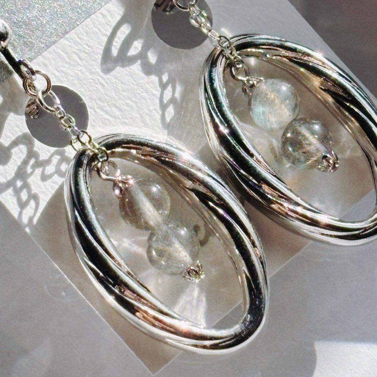 大ぶり輪の中の天然石イヤリング ラブラドライト シルバー