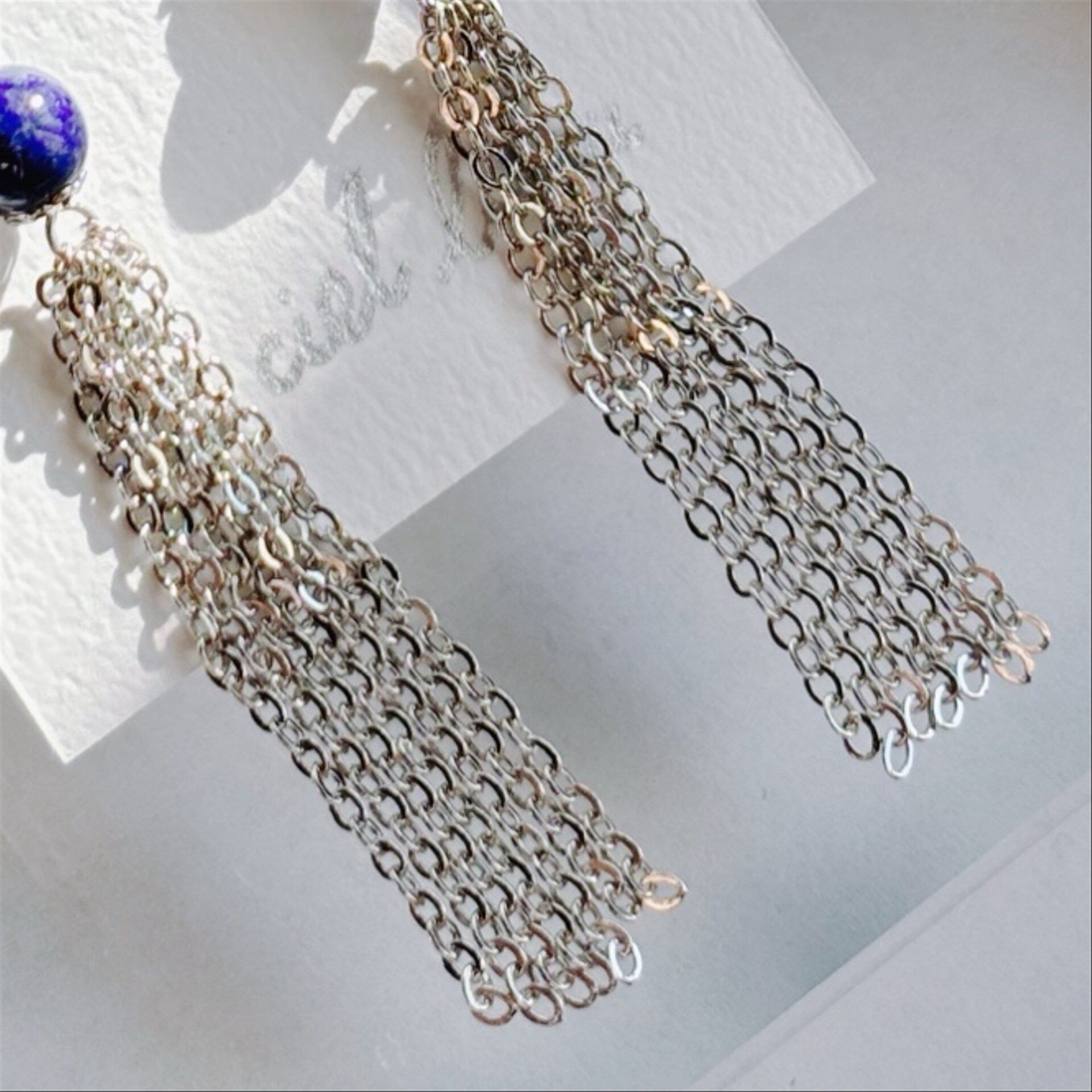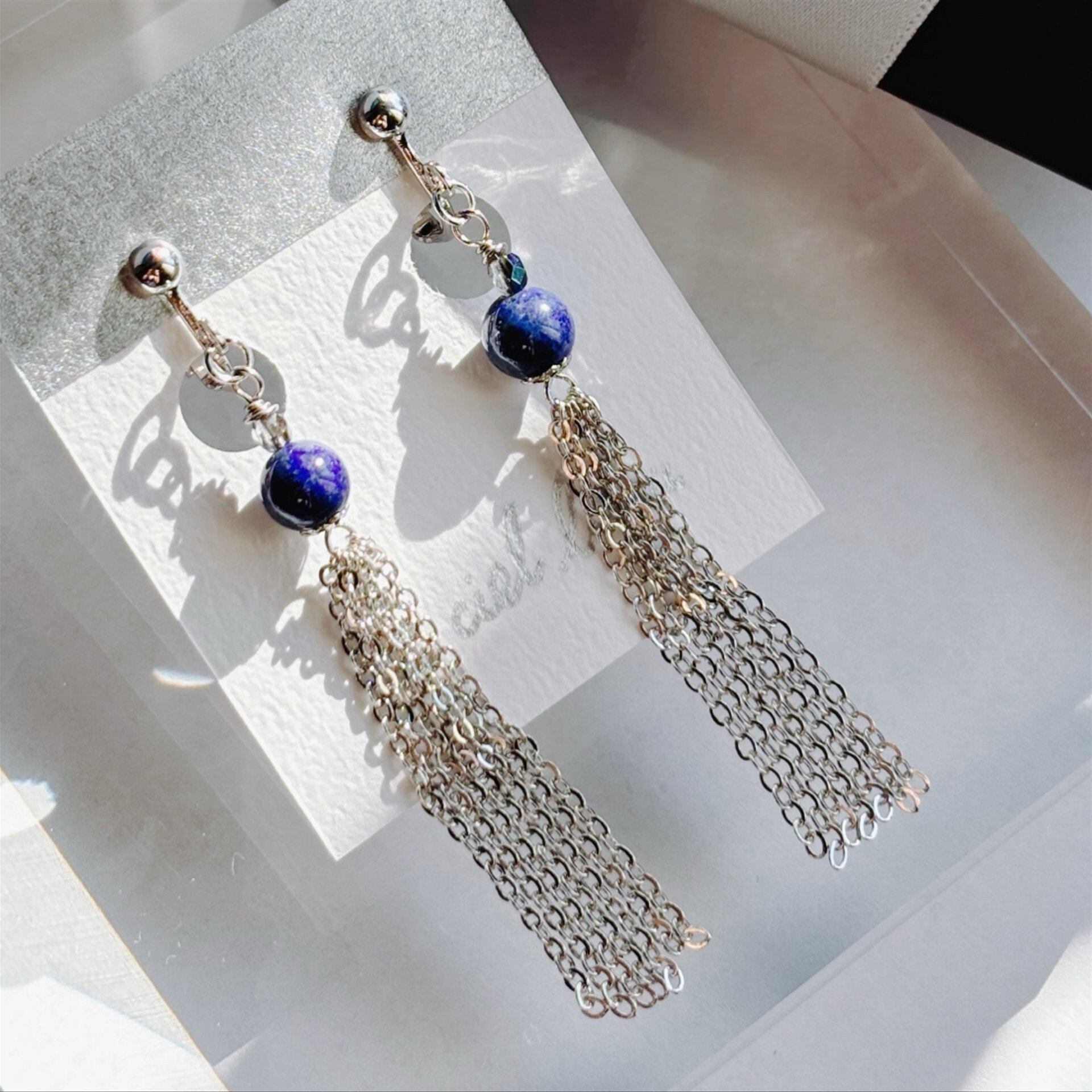 耳元揺れるイヤリング ラピスラズリ ゴールド/シルバー