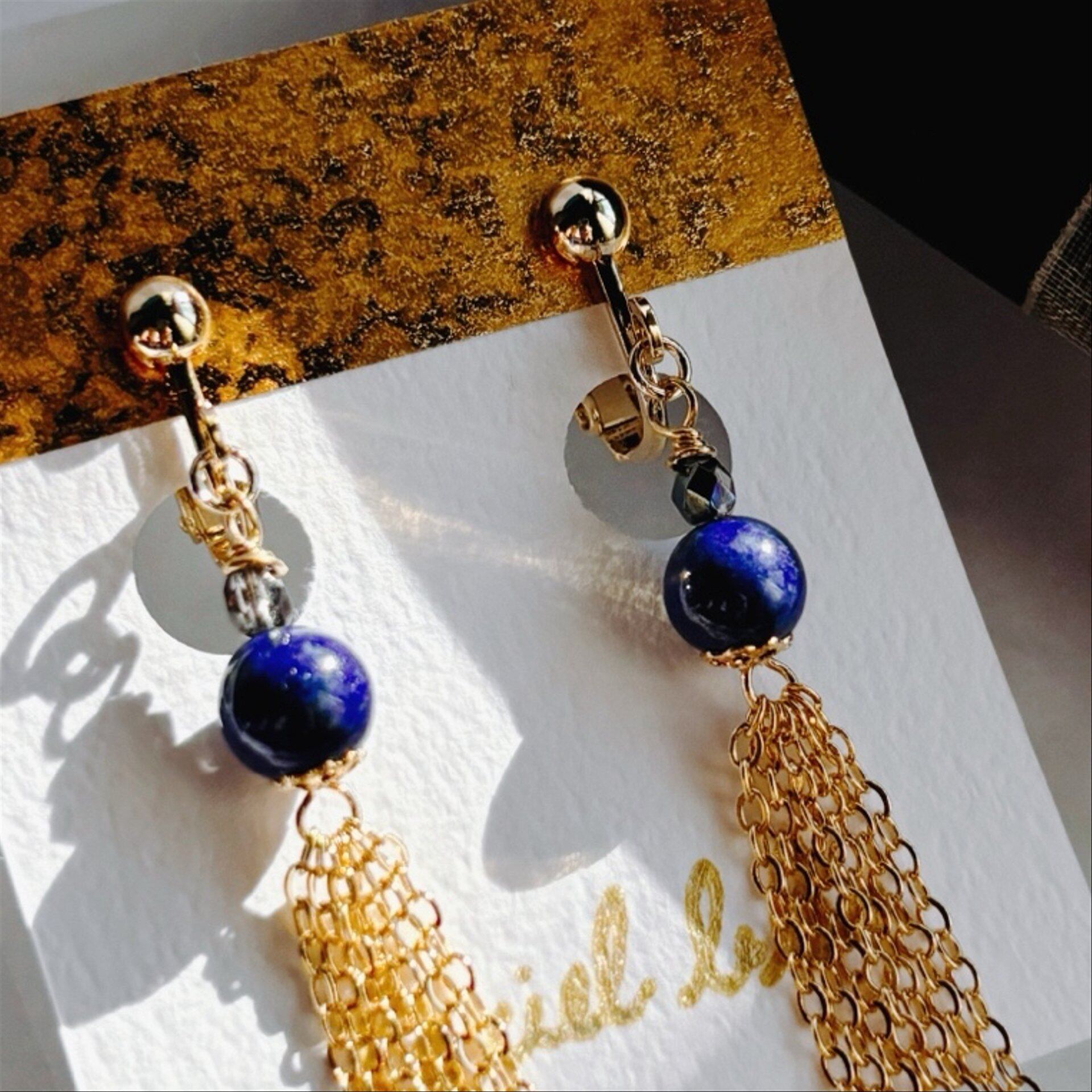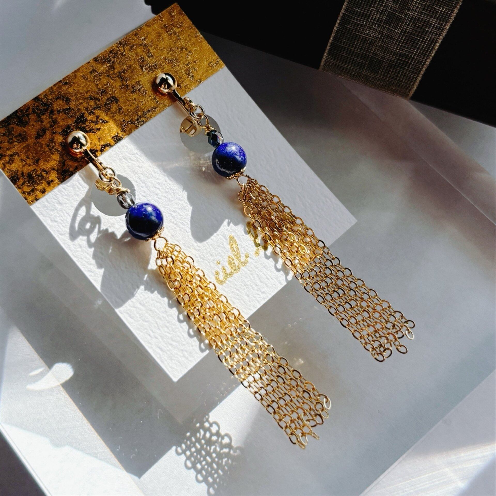 そんな【大人華やか】をモチーフにした、天然石ラピスラズリのイヤリング。