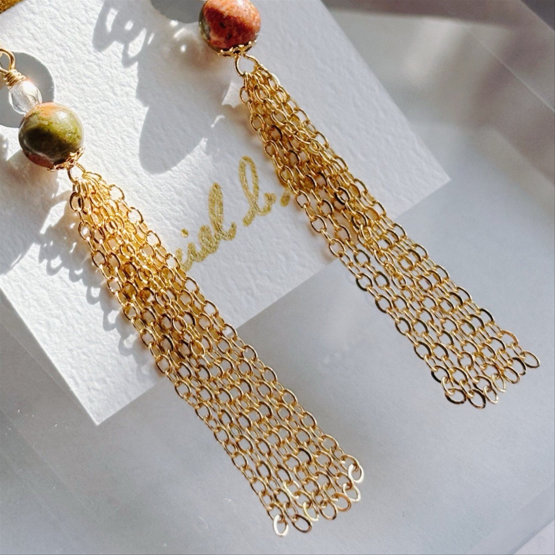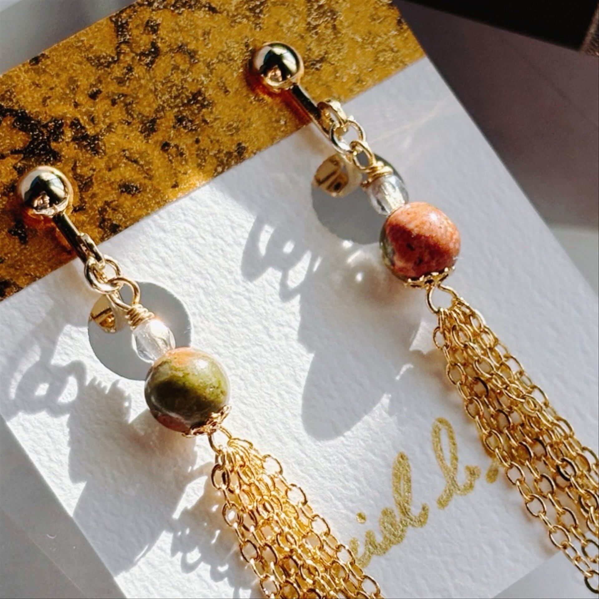 そんな【大人華やか】をモチーフにした、天然石ユナカイトのイヤリング。