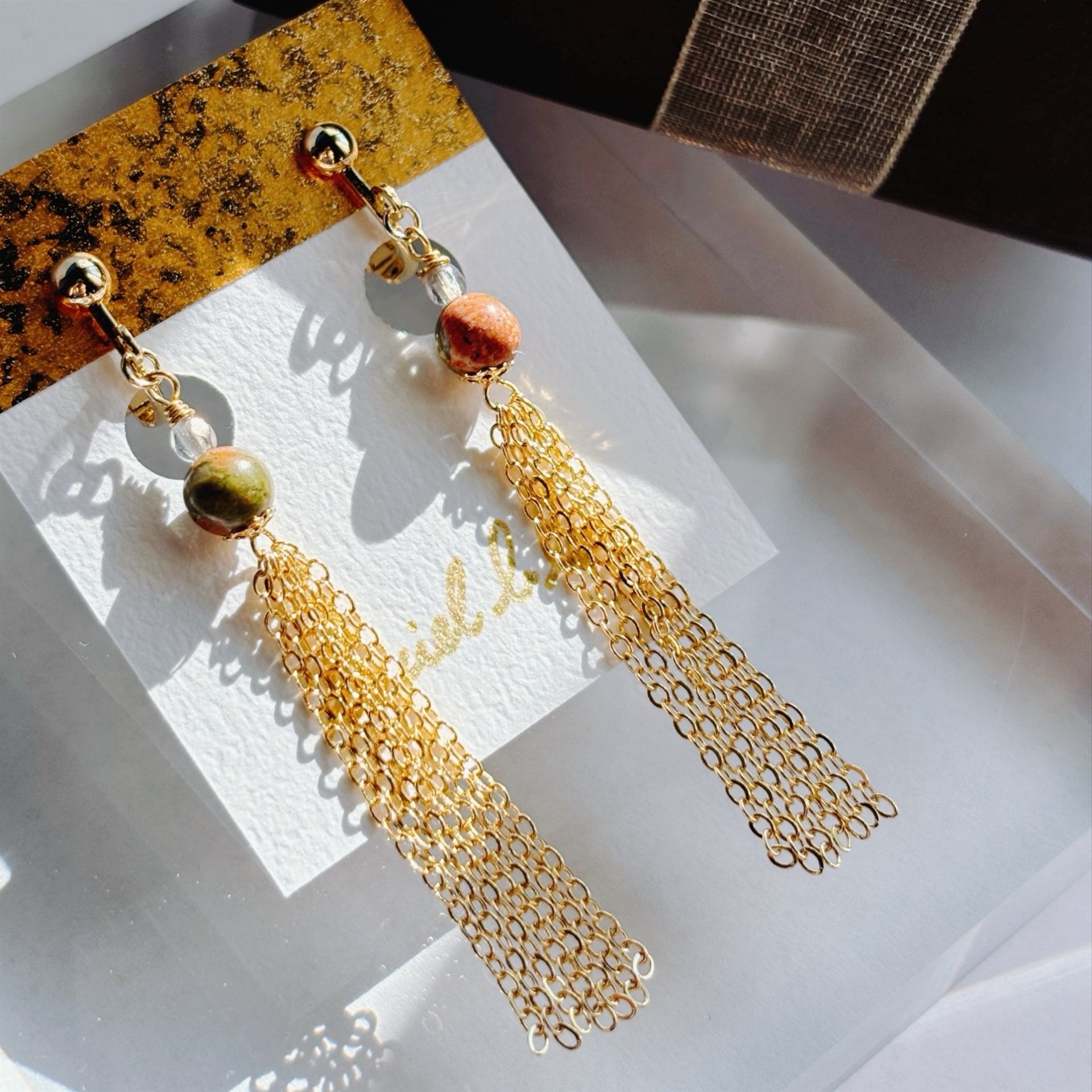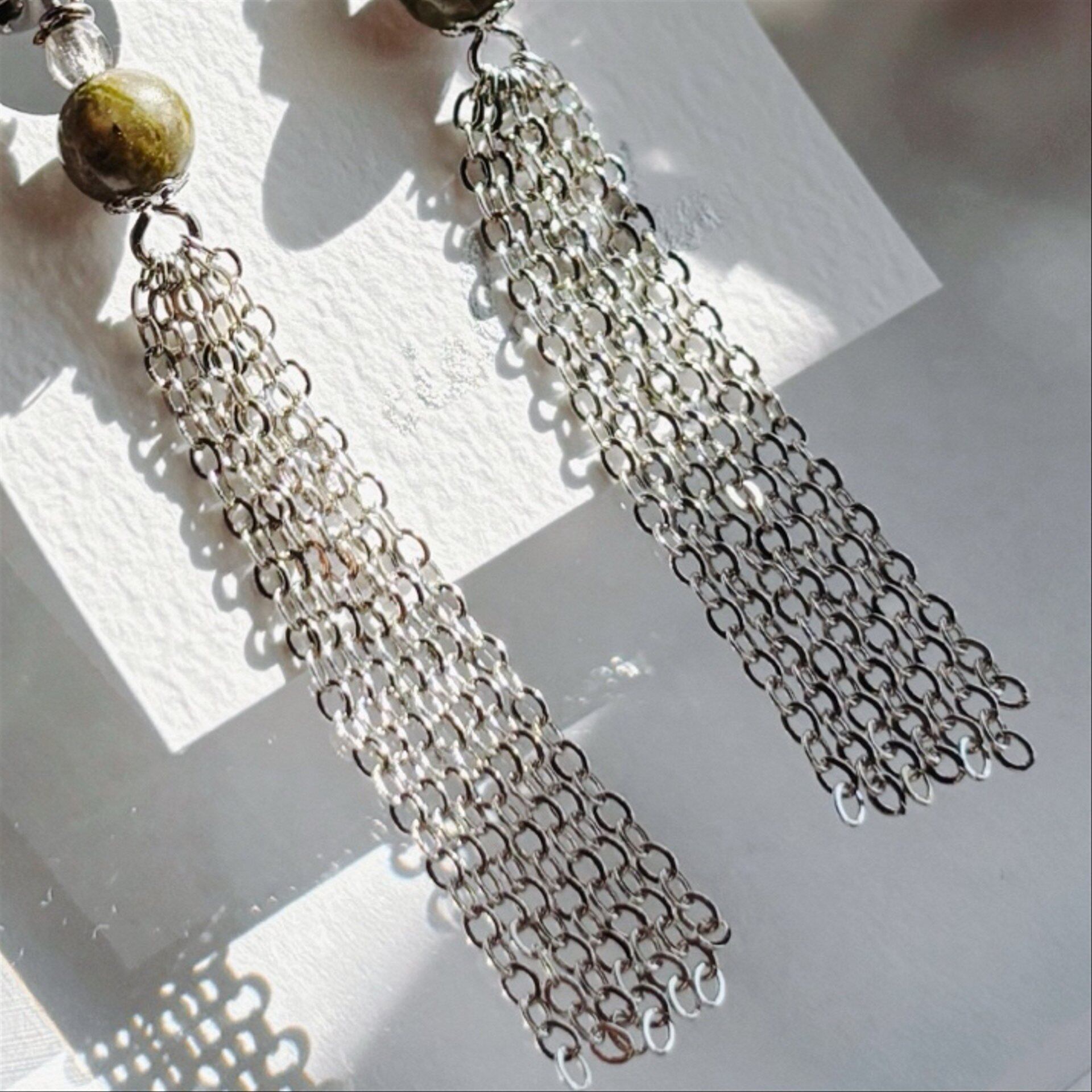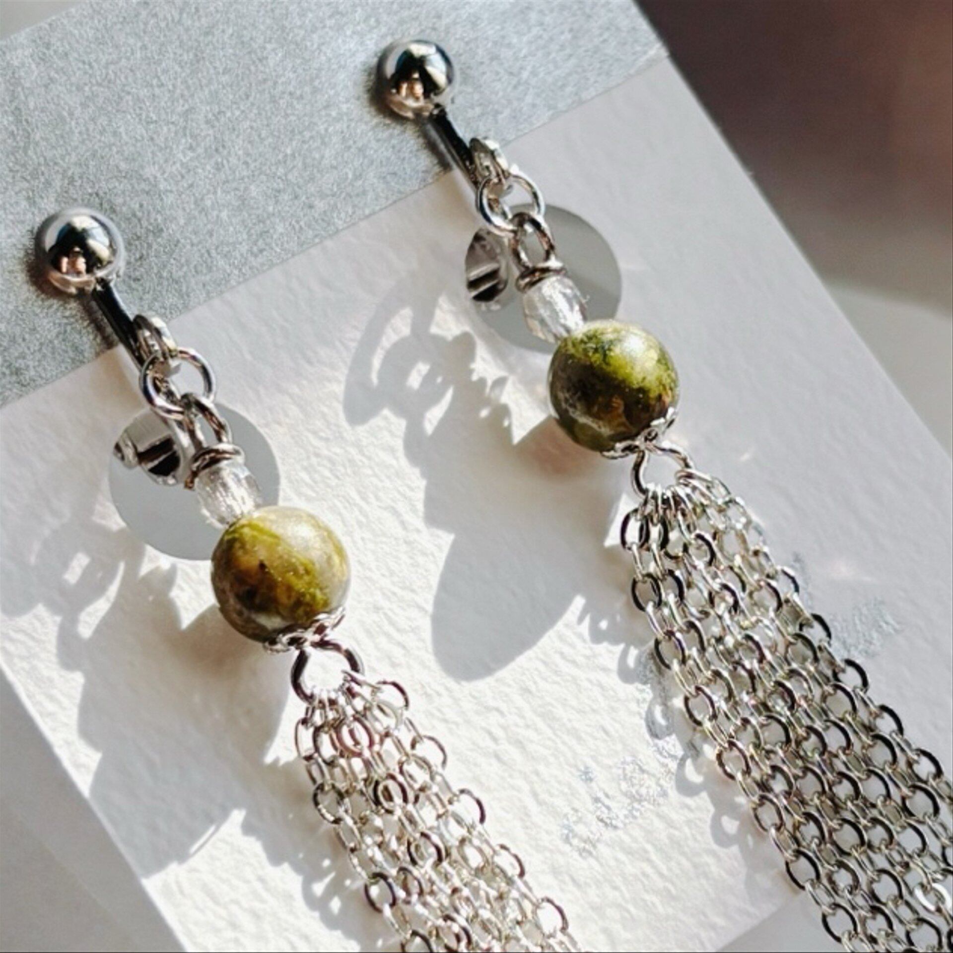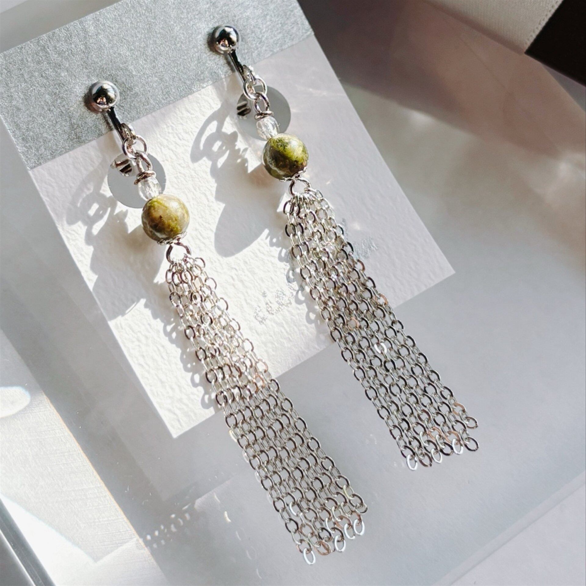 耳元揺れるイヤリング ユナカイト ゴールド/シルバー