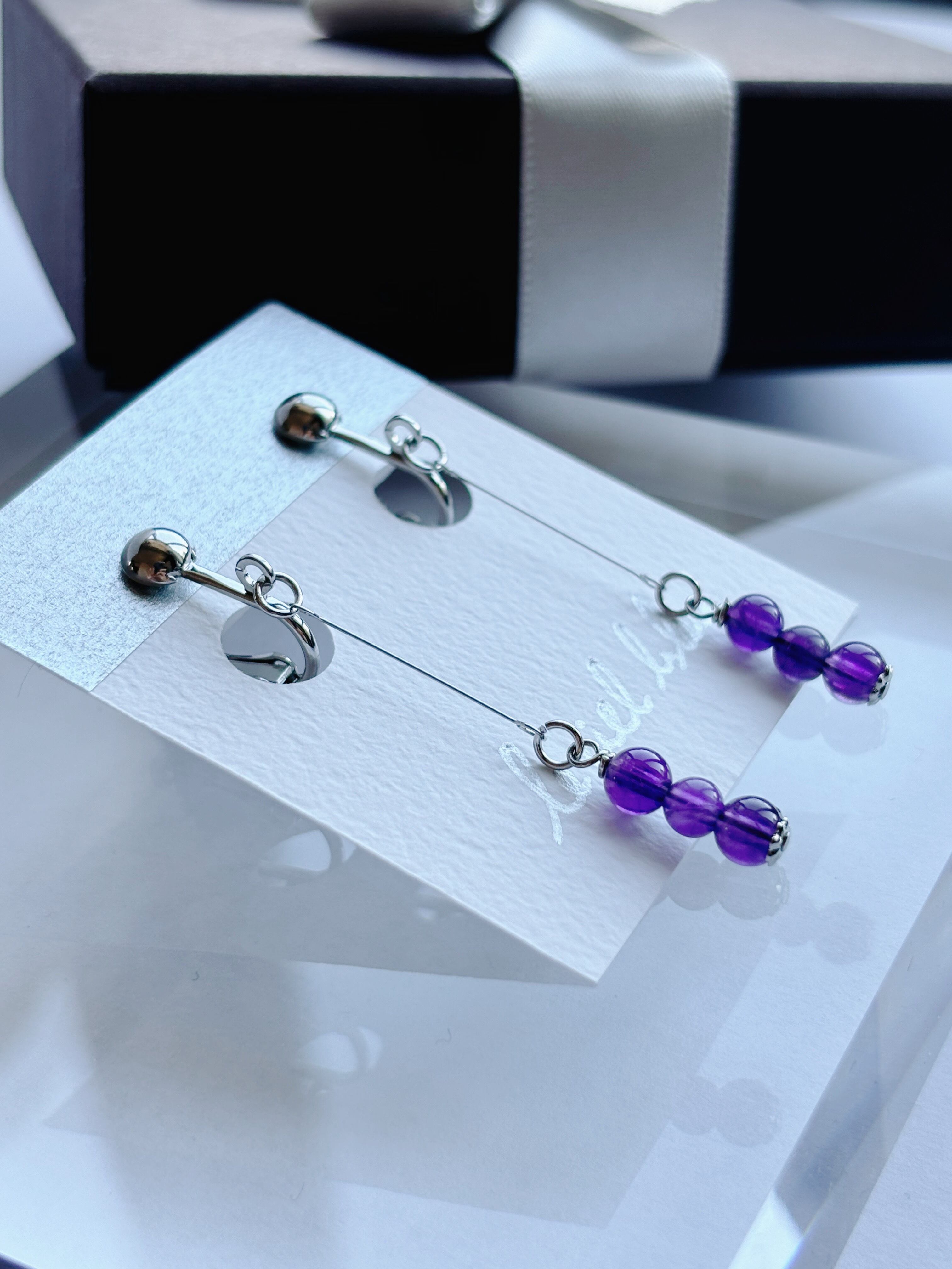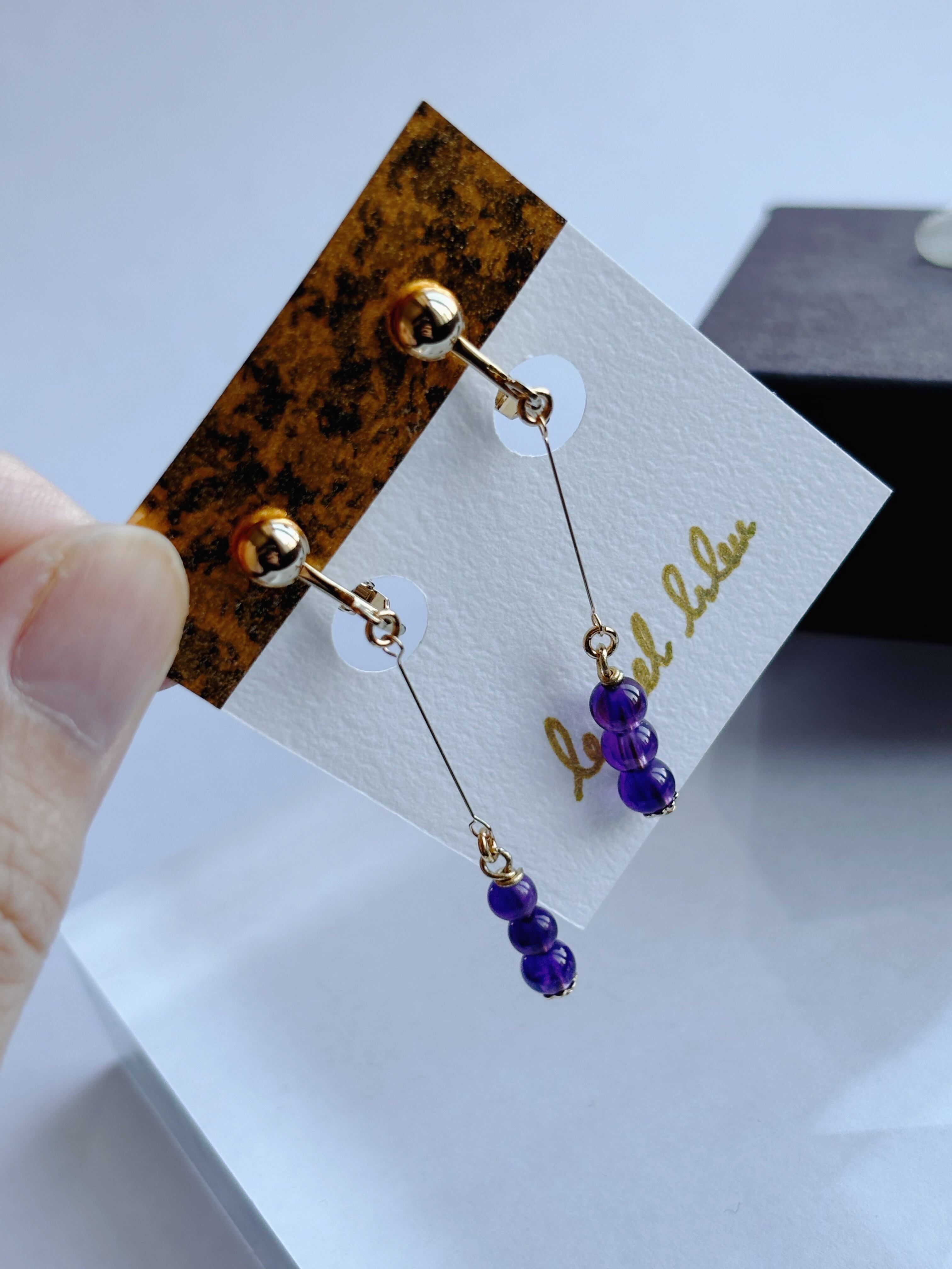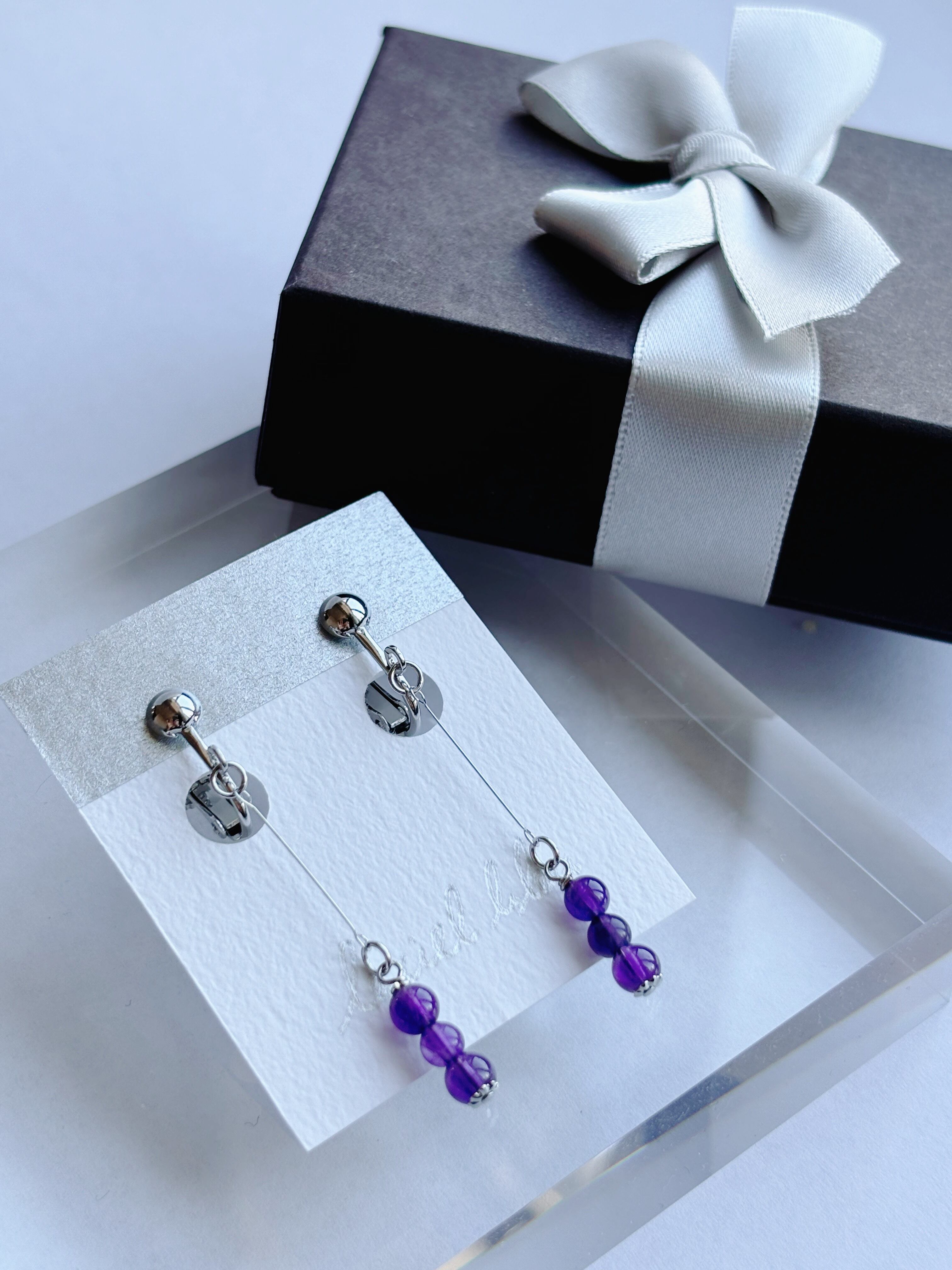 天然石は片側だけでも3粒使用しているので、シンプルと言えど満足感のあるデザインです。