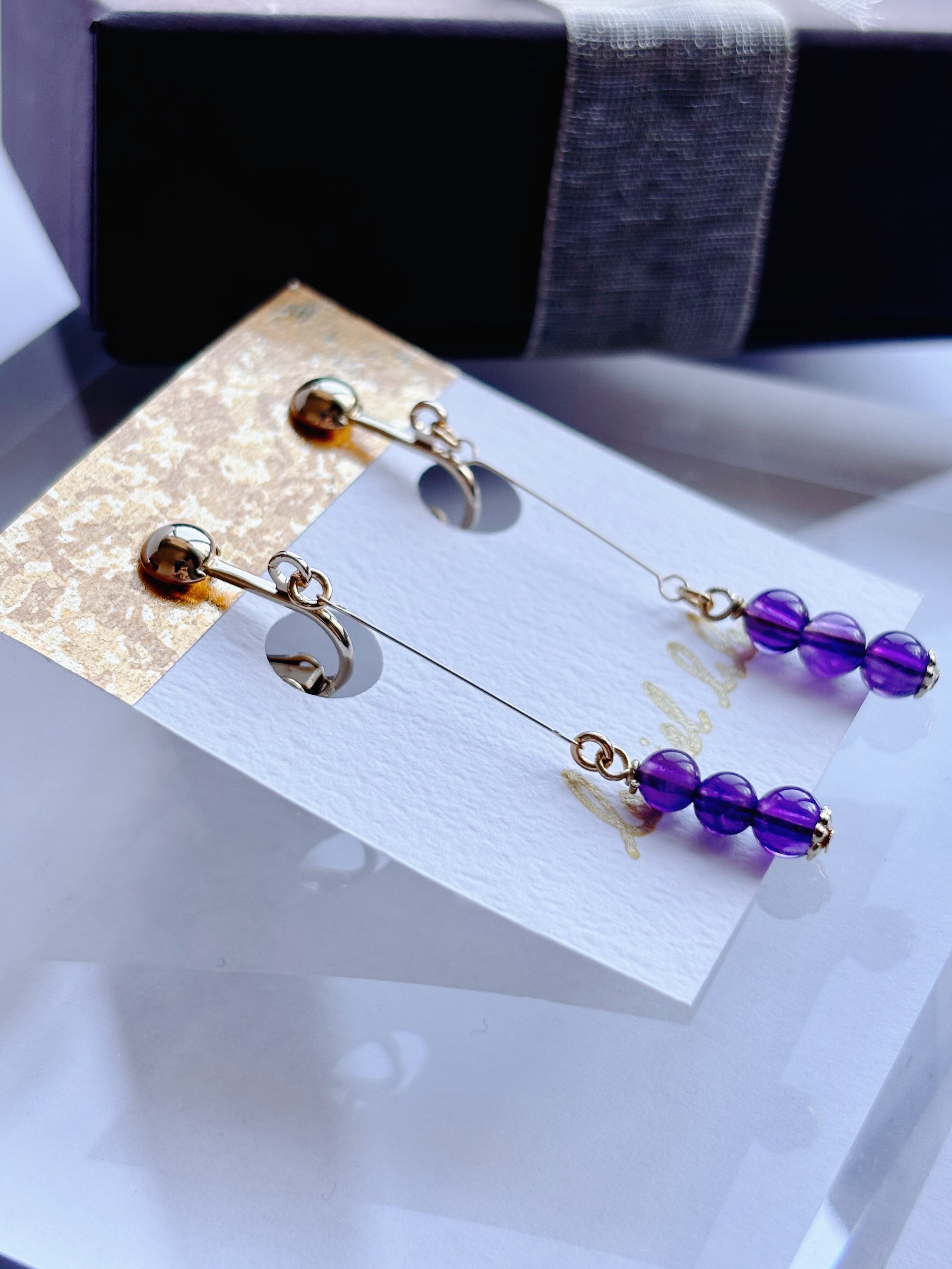 シンプル天然石イヤリング アメジスト ゴールド/シルバー