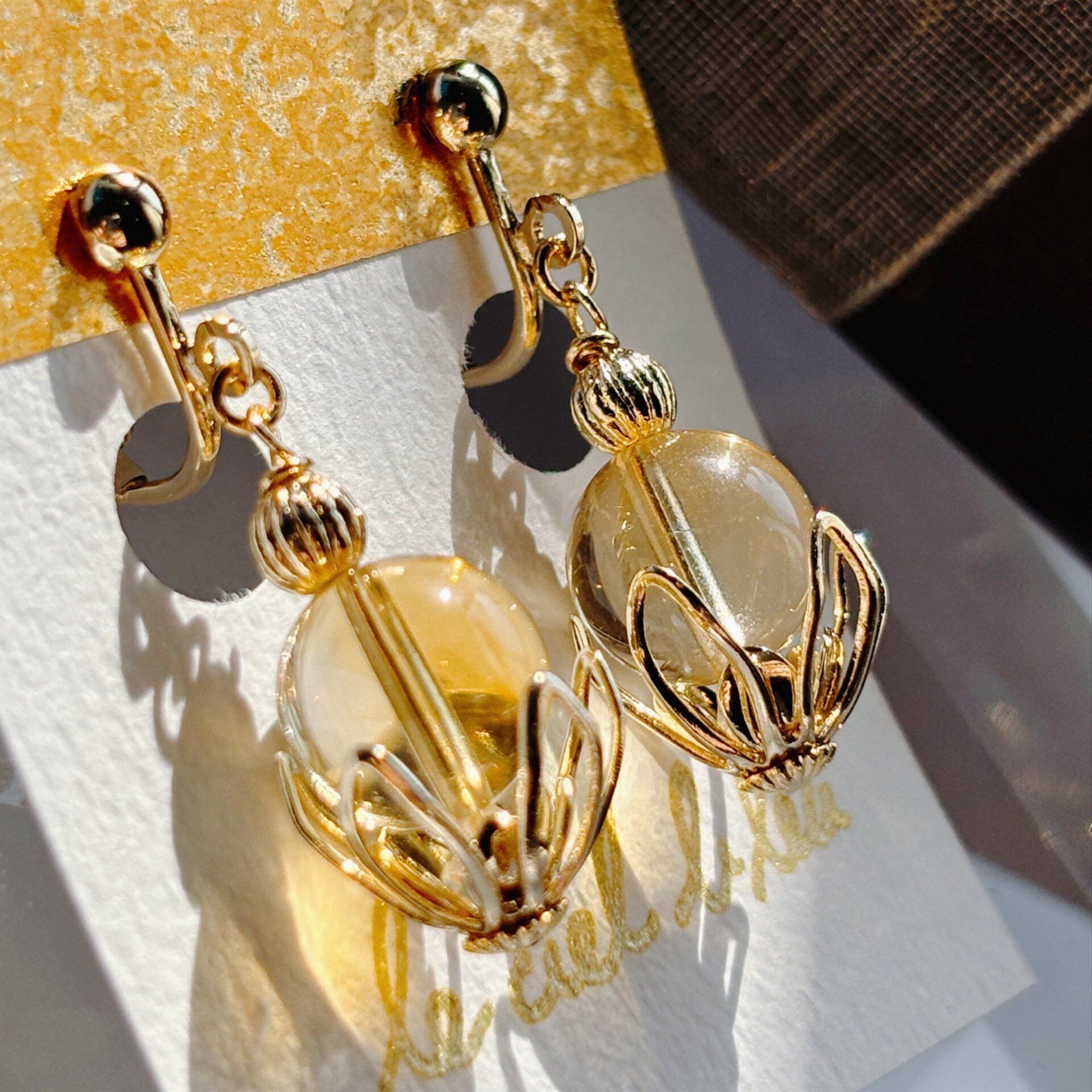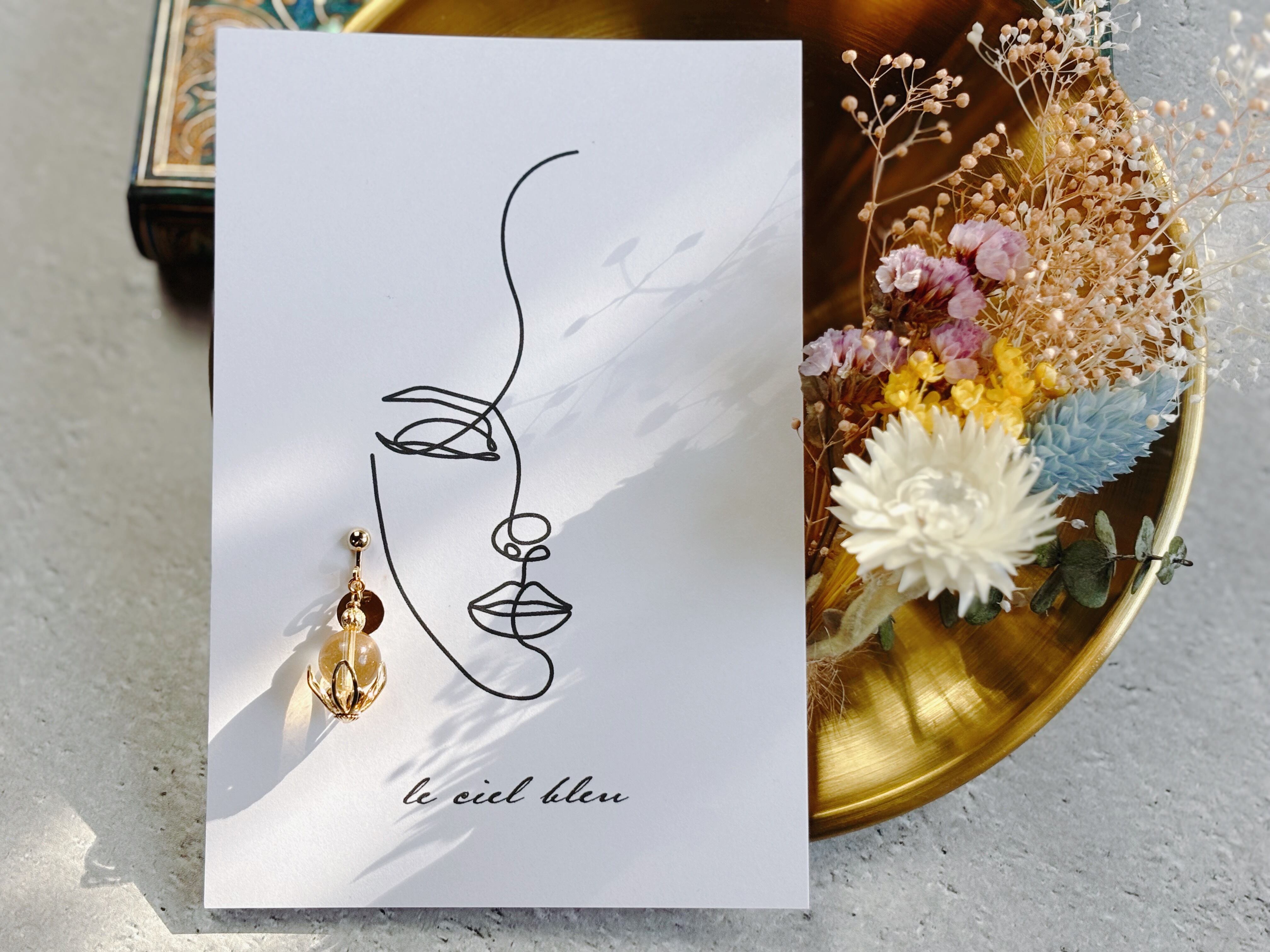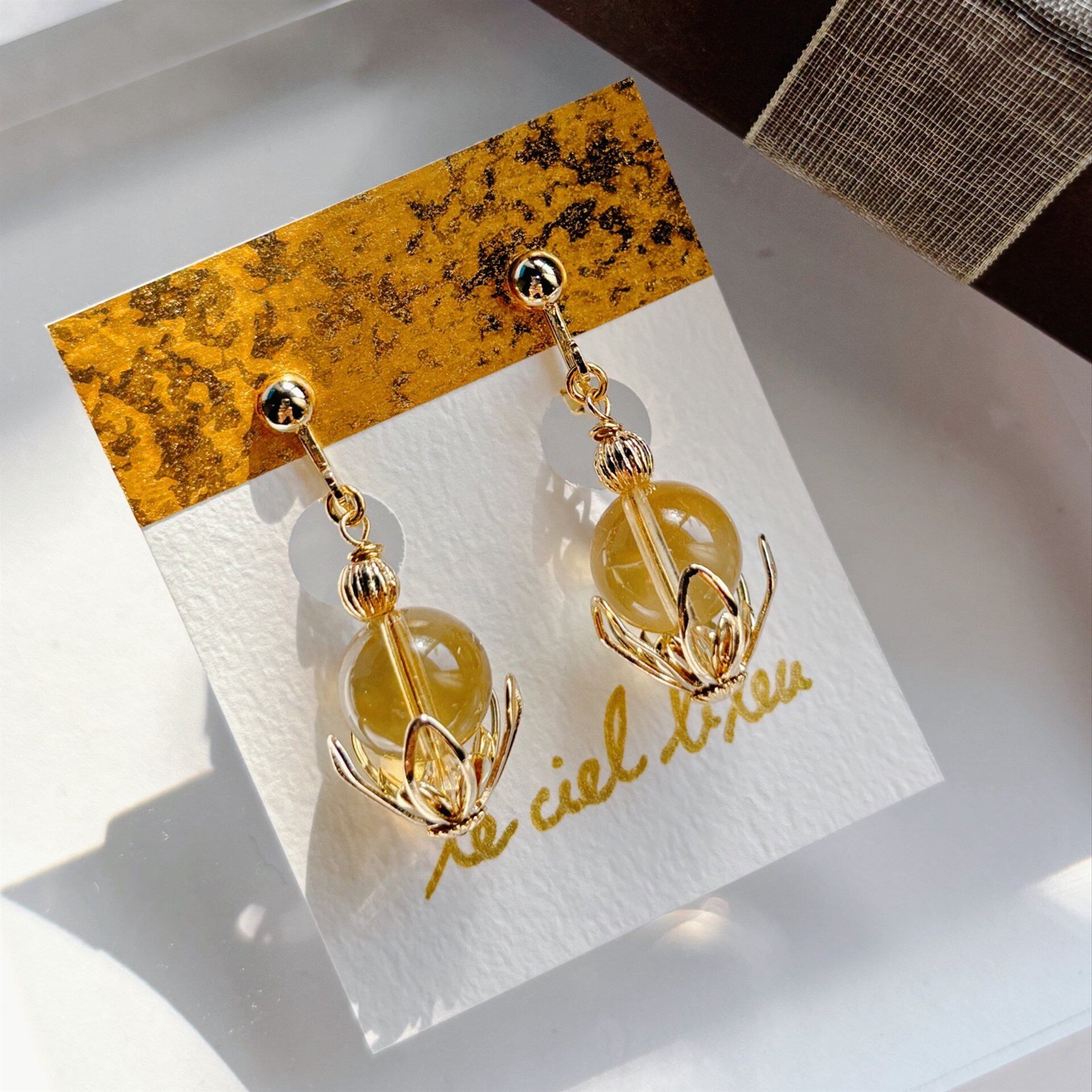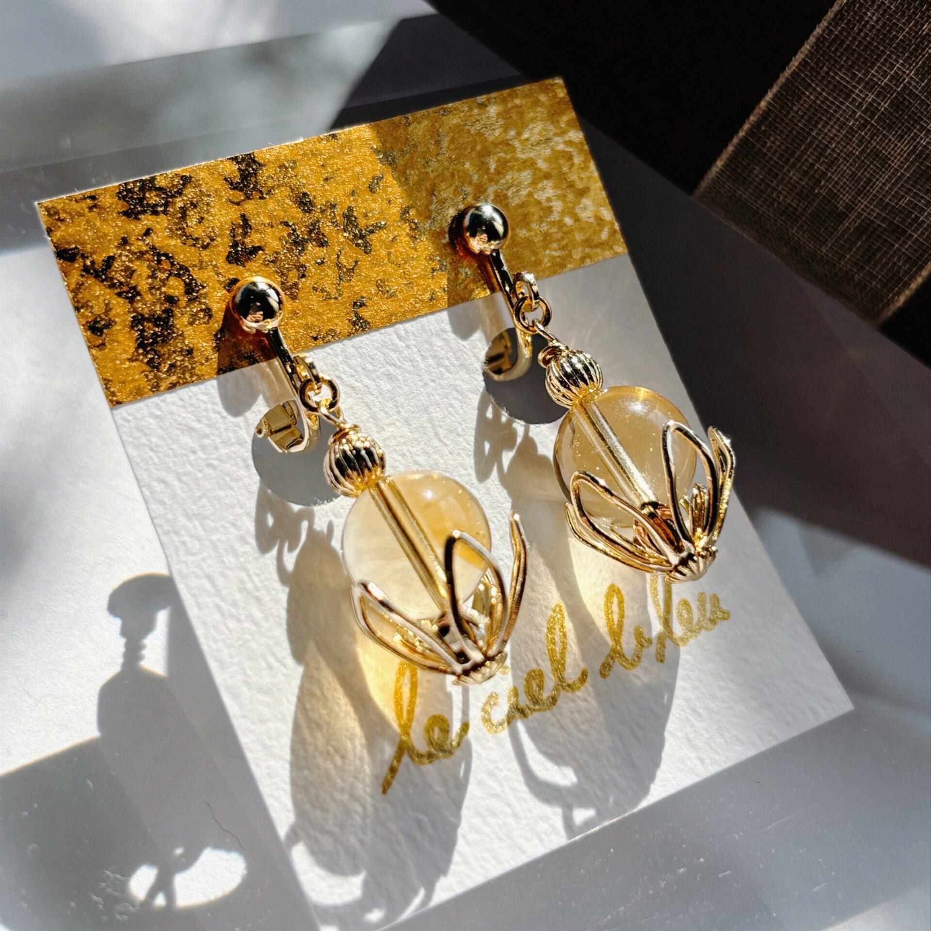 天然石シトリンも大粒10mmを使用しているため、物足りなさは感じない、存在感のあるイヤリングになっているかと思います。