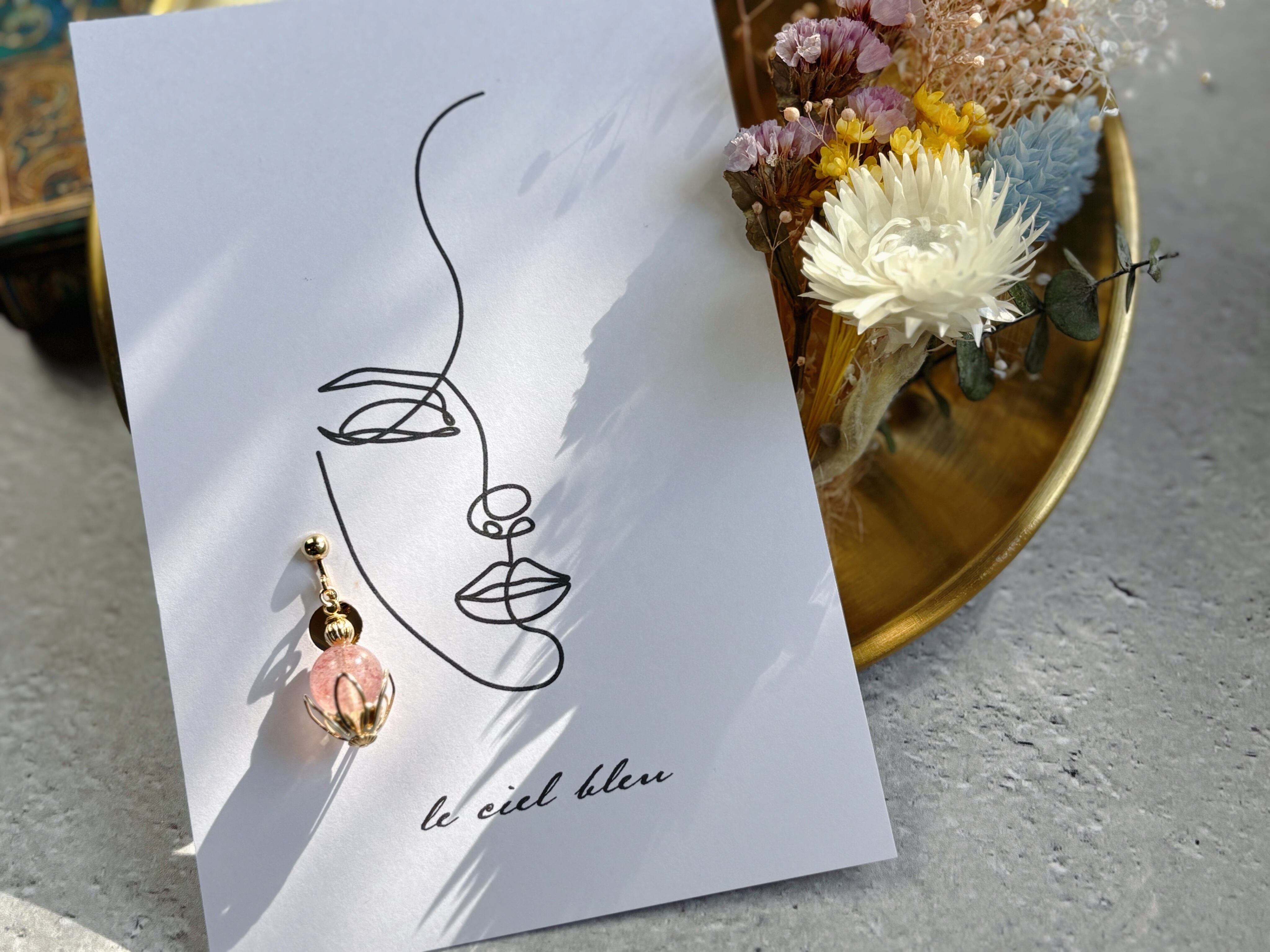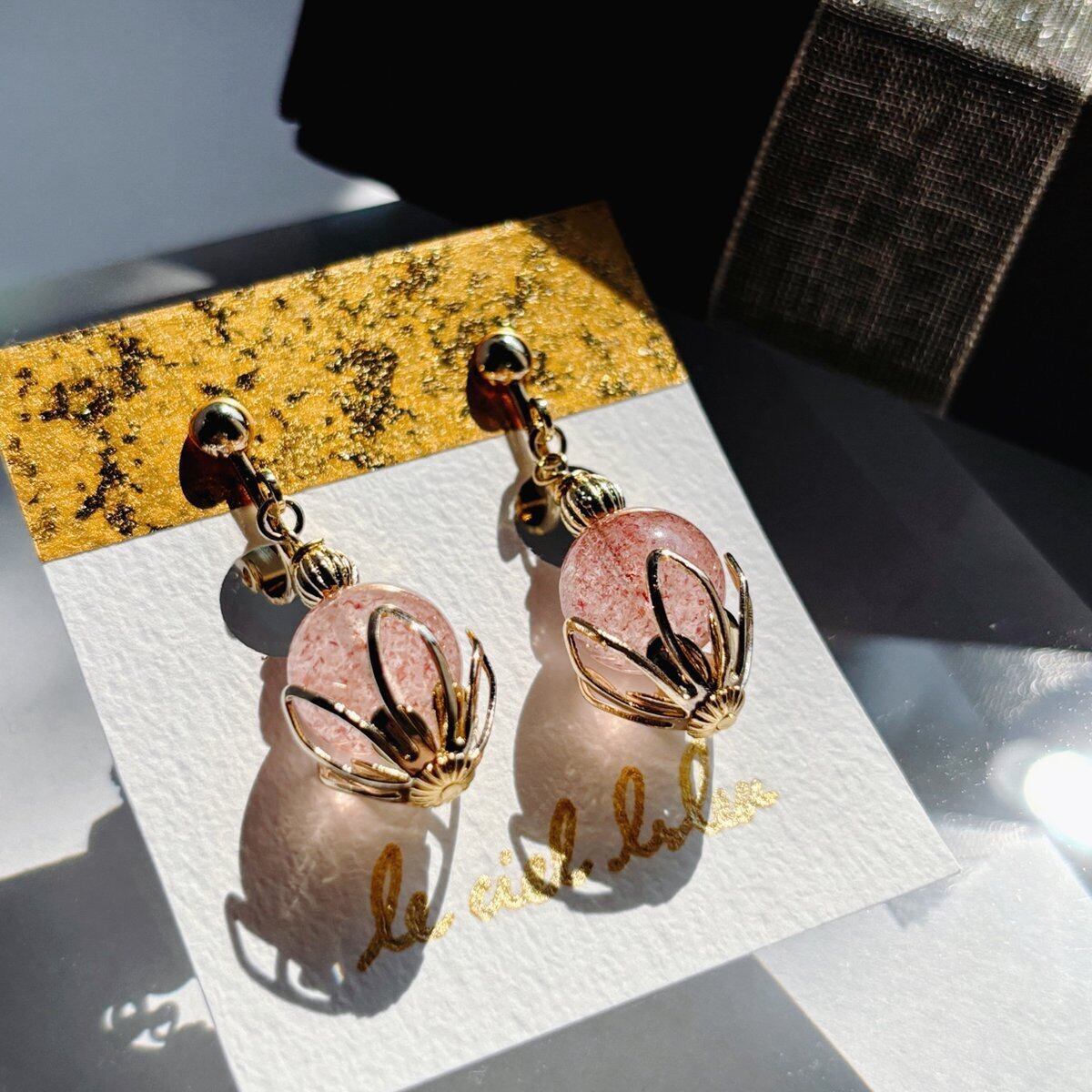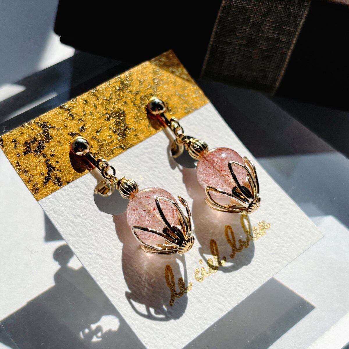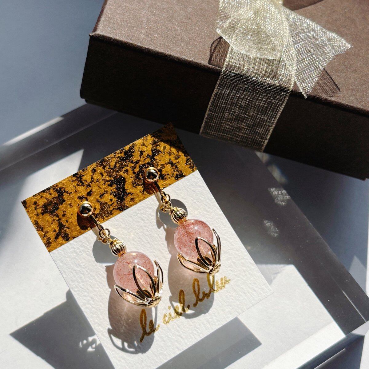 天然石ストロベリークォーツも大粒10mmを使用しているため、物足りなさは感じない、存在感のあるイヤリングになっているかと思います。
