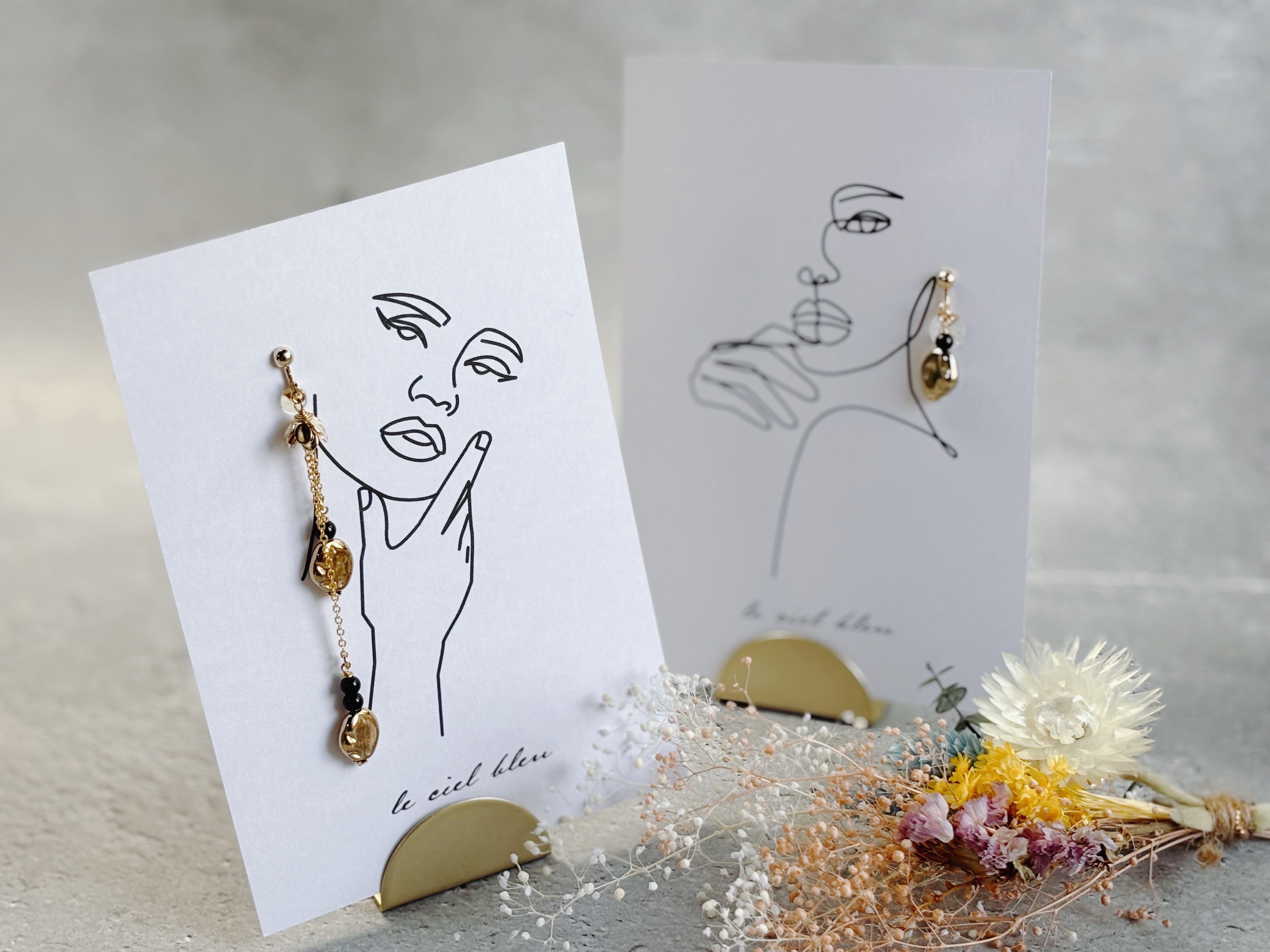 同じイメージのロングイヤリングもご用意があり、そちらとこのこちらのイヤリングでペアルックで着用するのもおススメです。