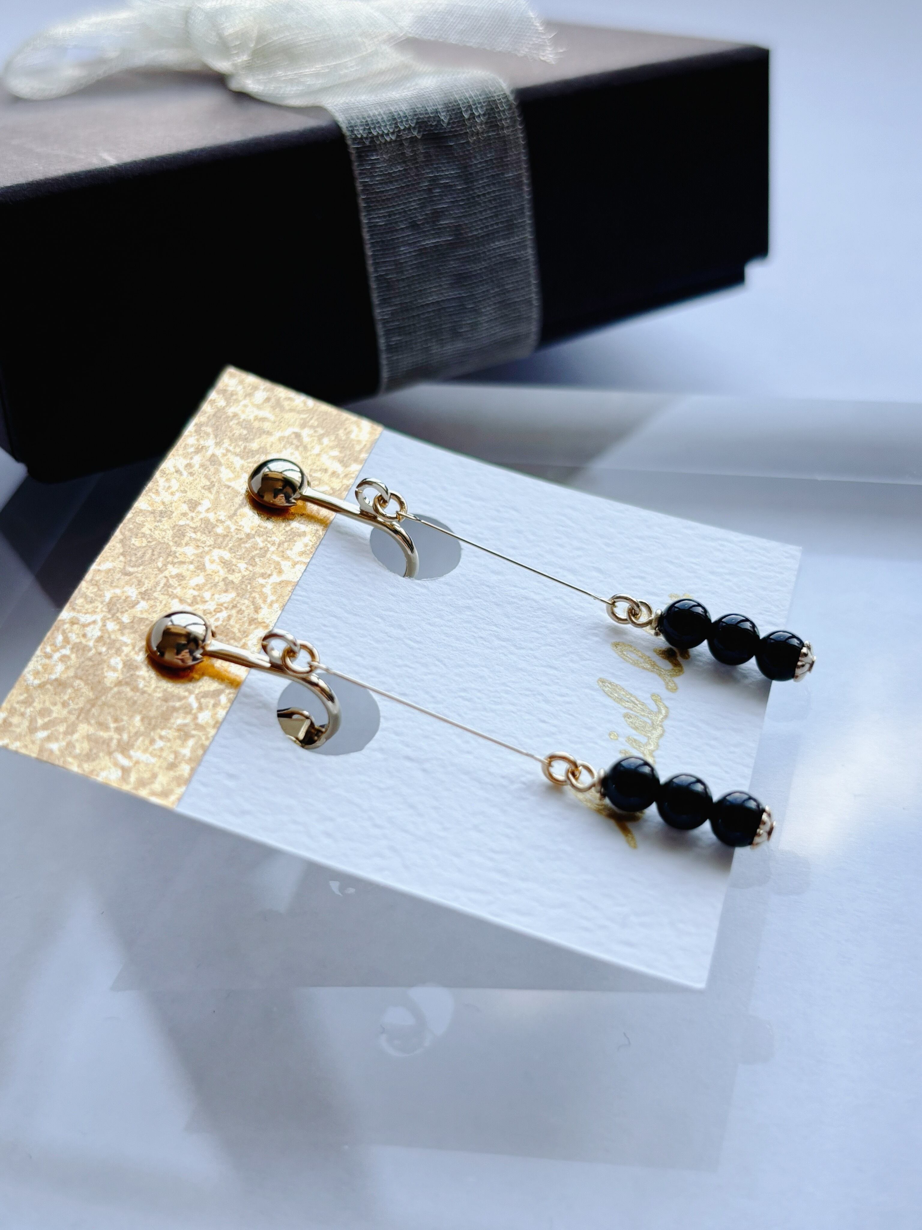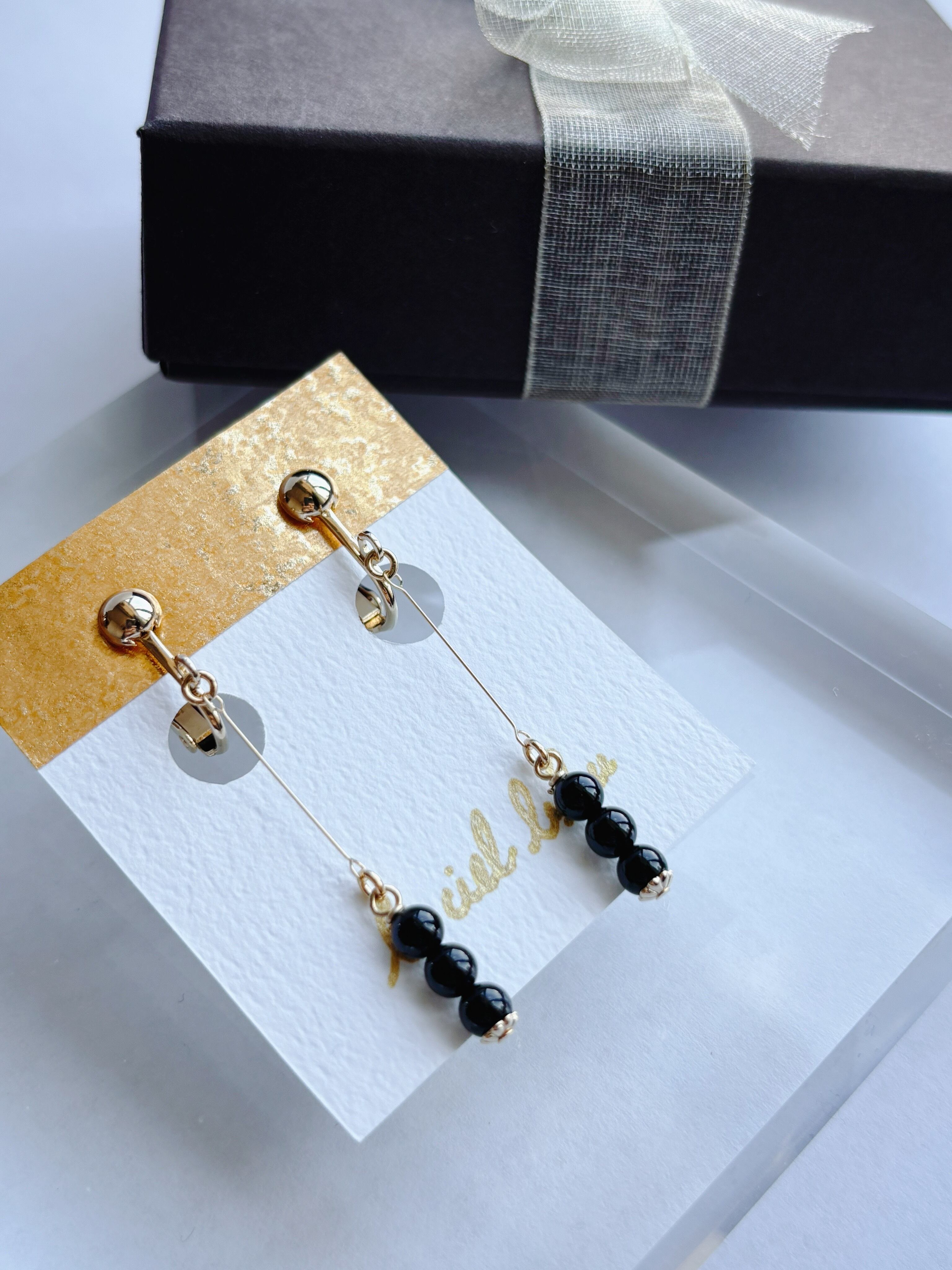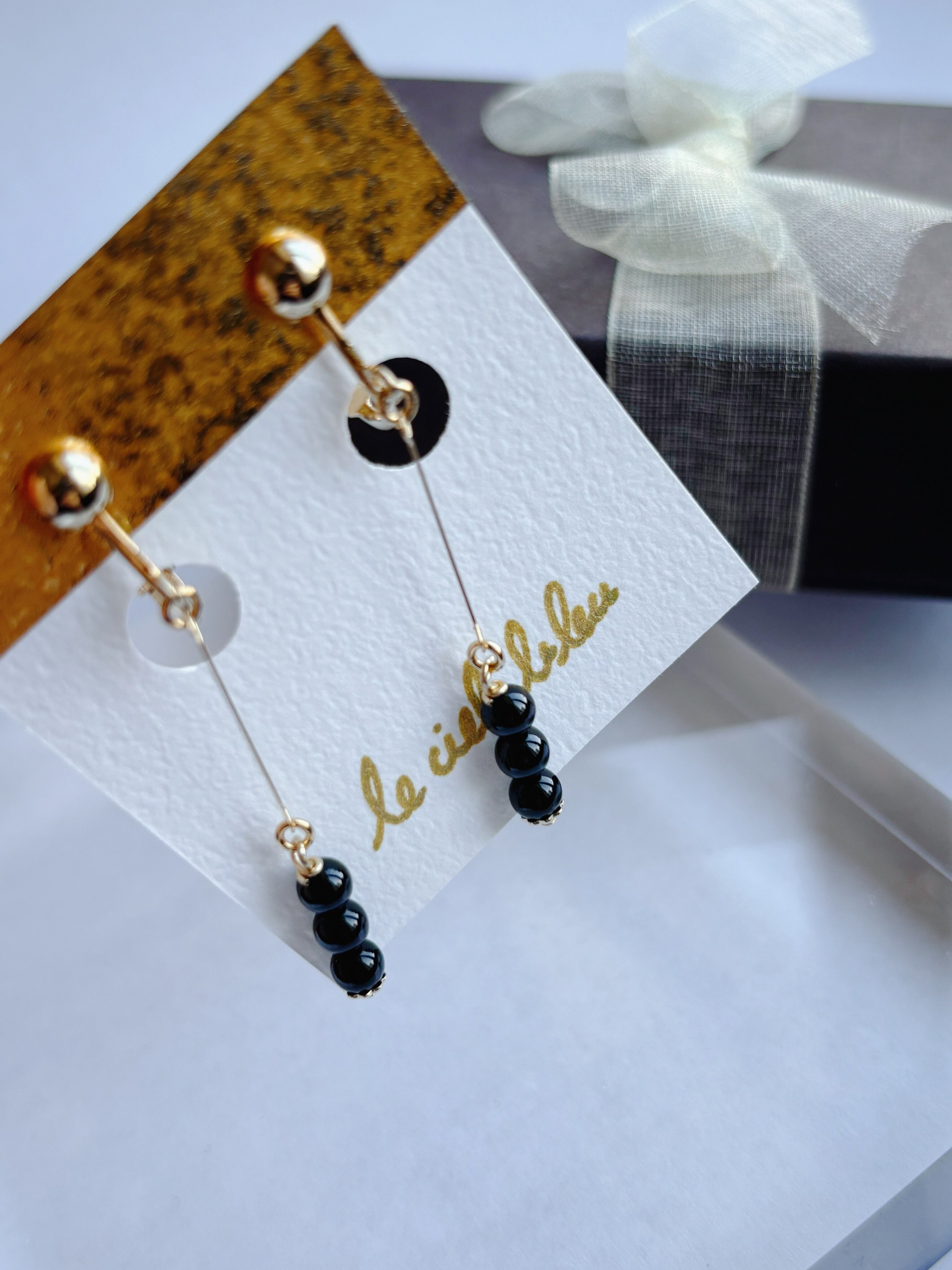 天然石は片側だけでも3粒使用しているので、シンプルと言えど満足感のあるデザインです。