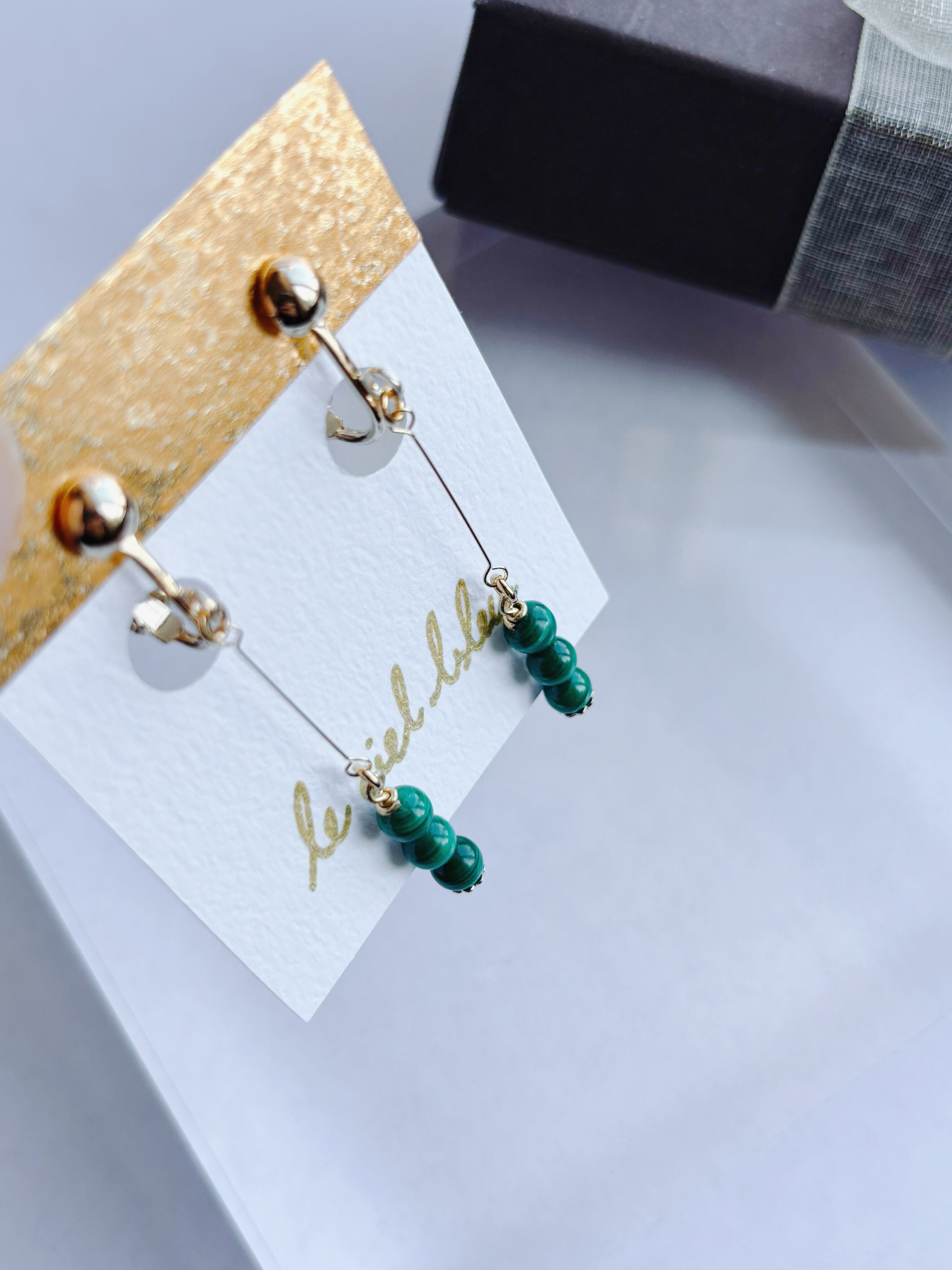 天然石のカラーが目立つイヤリング。
