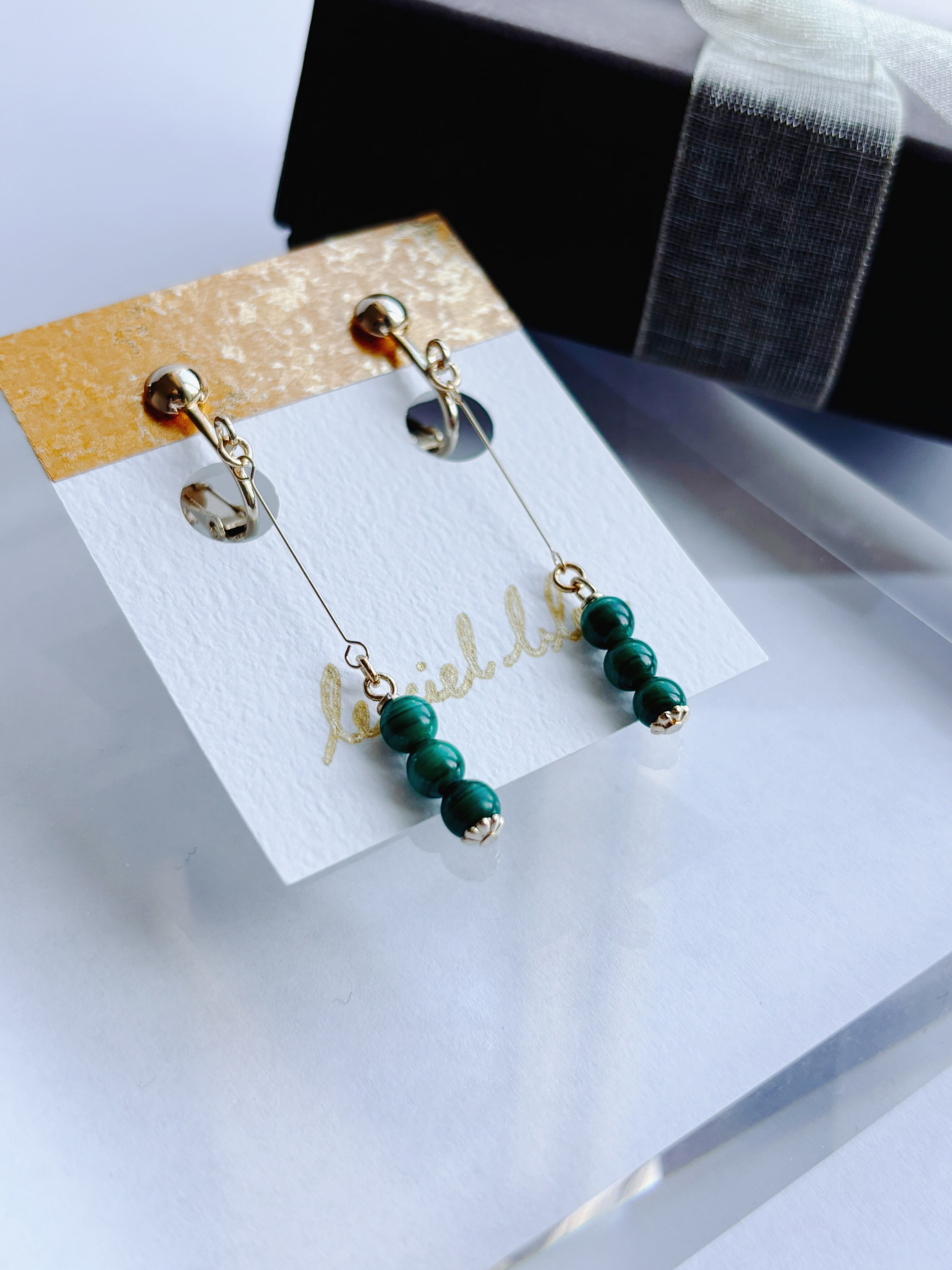 天然石は片側だけでも3粒使用しているので、シンプルと言えど満足感のあるデザインです。