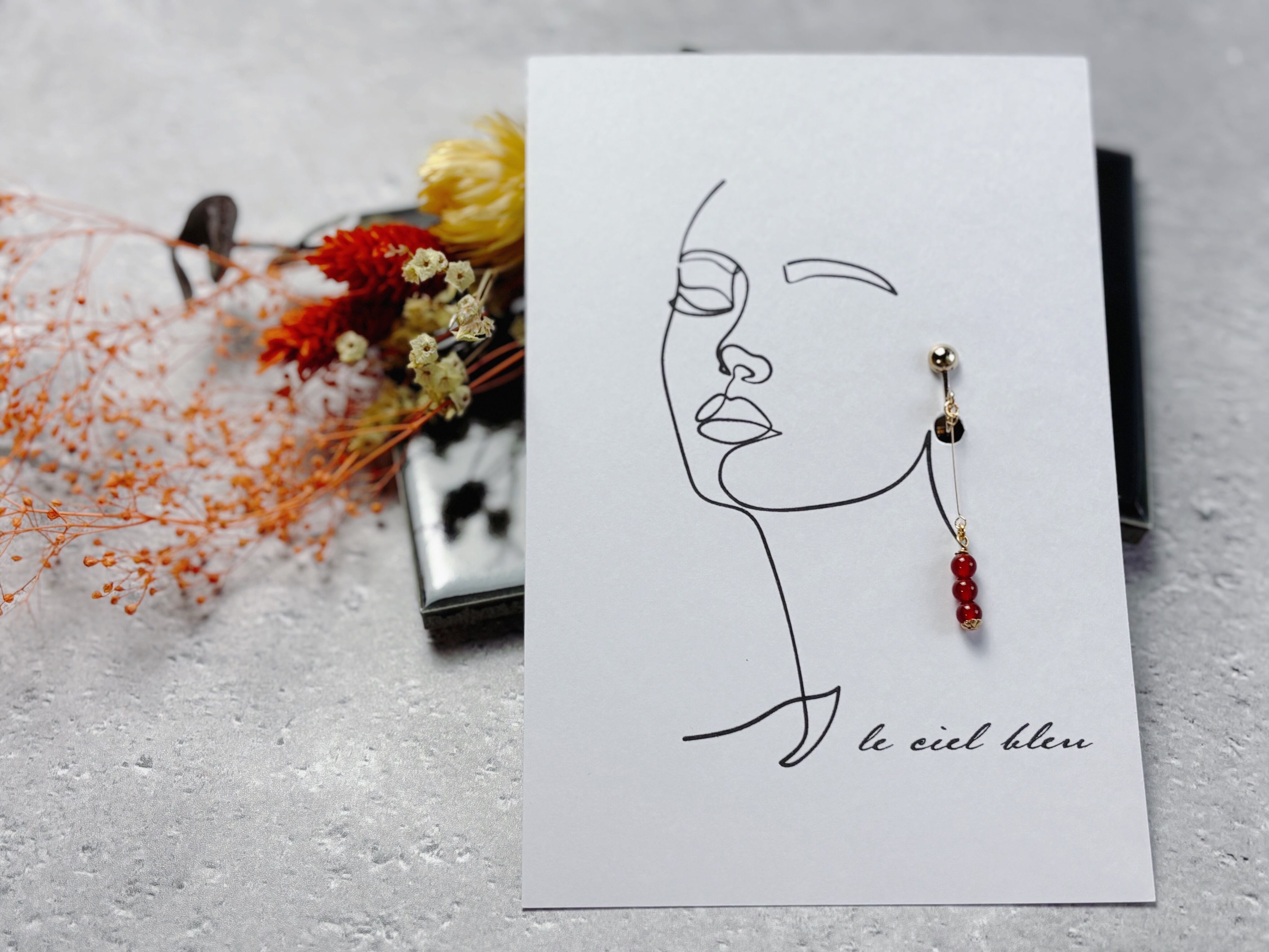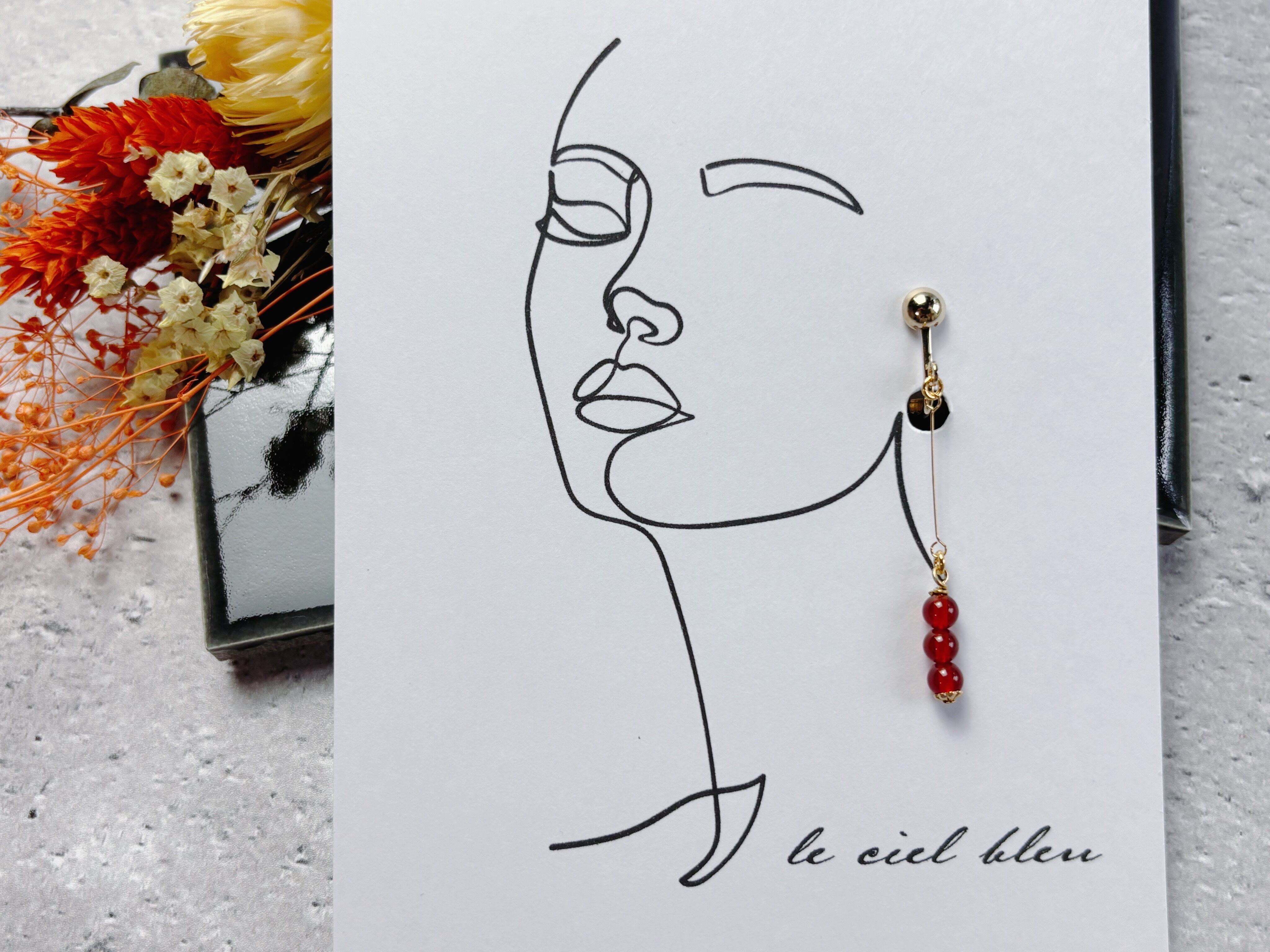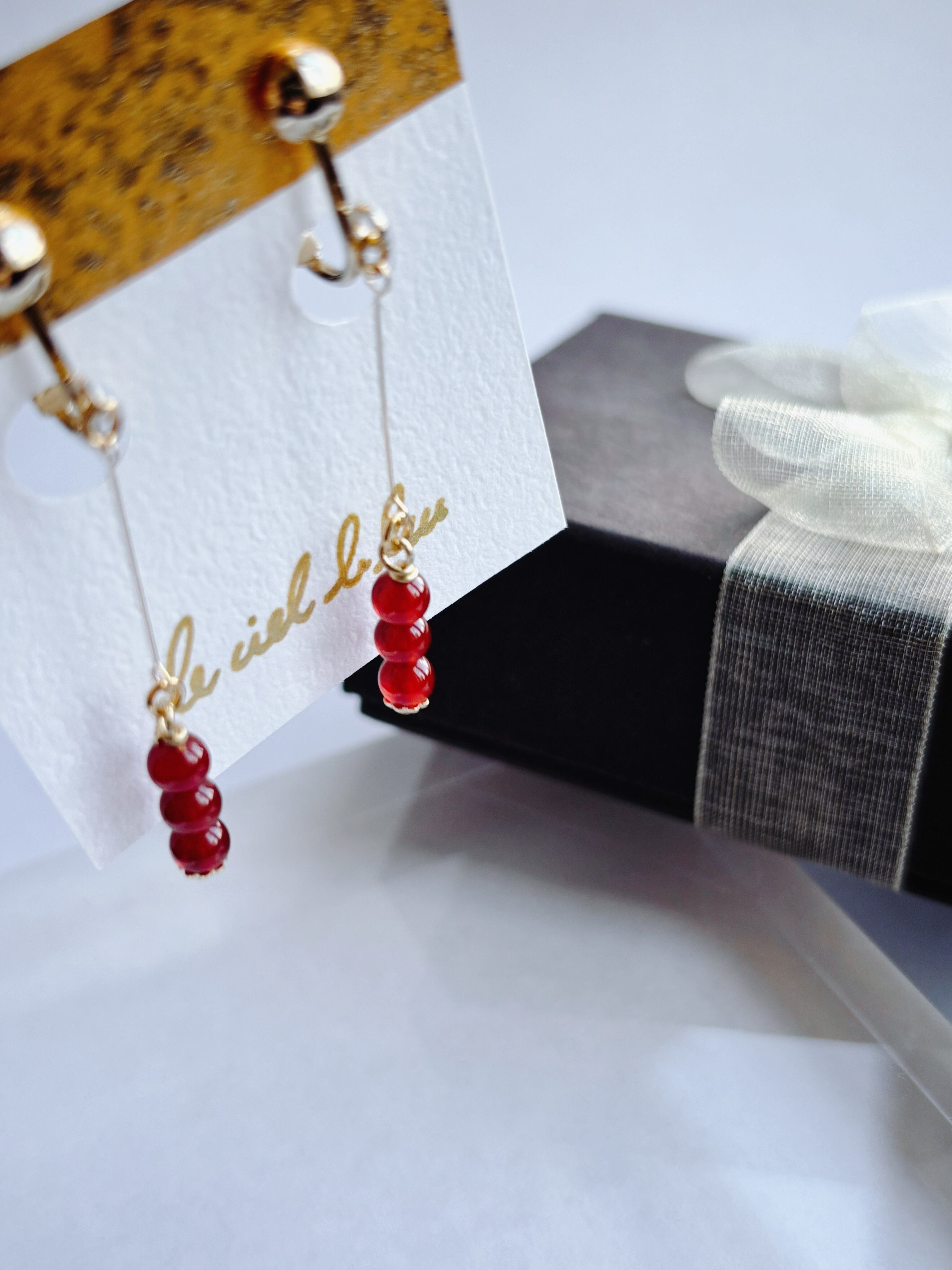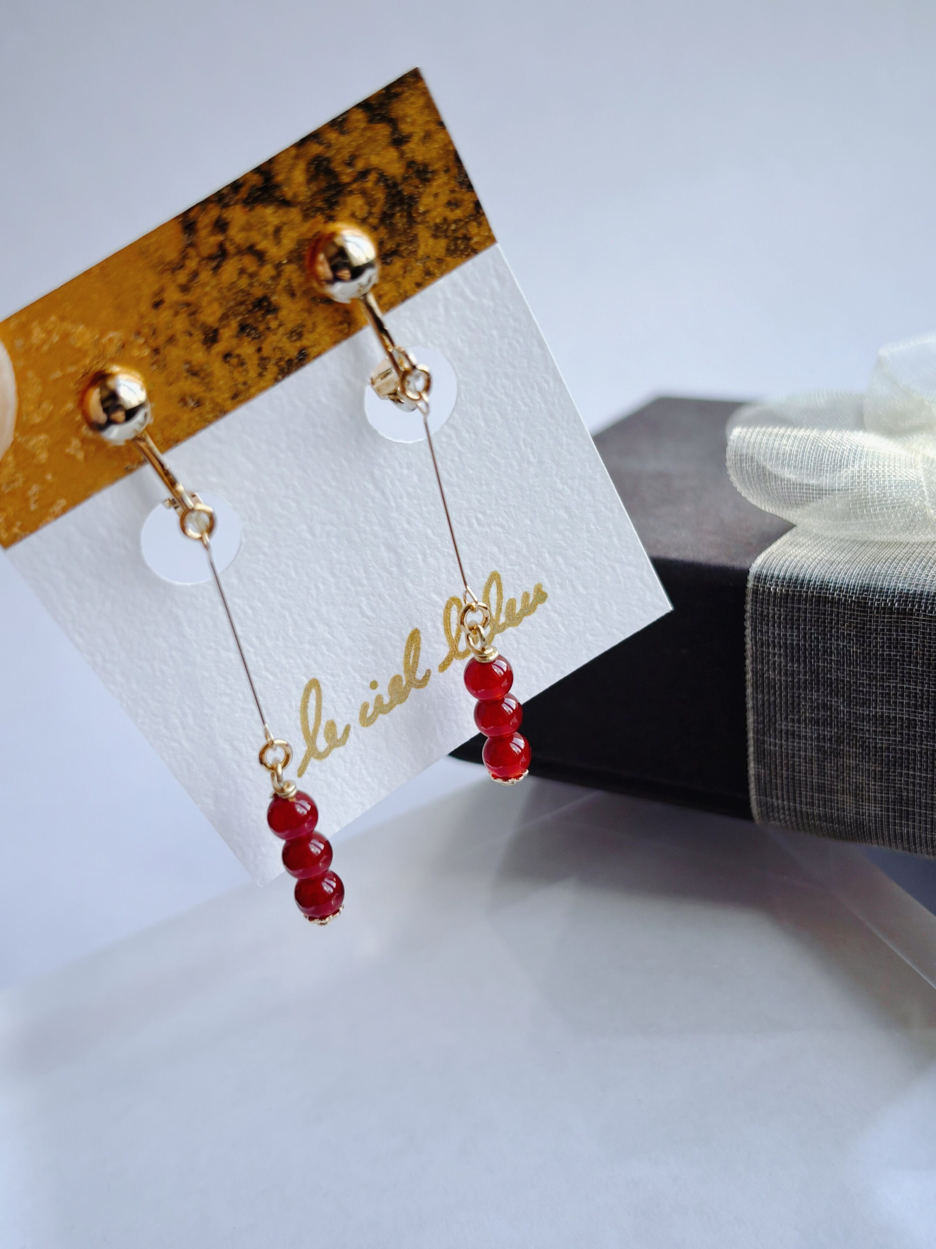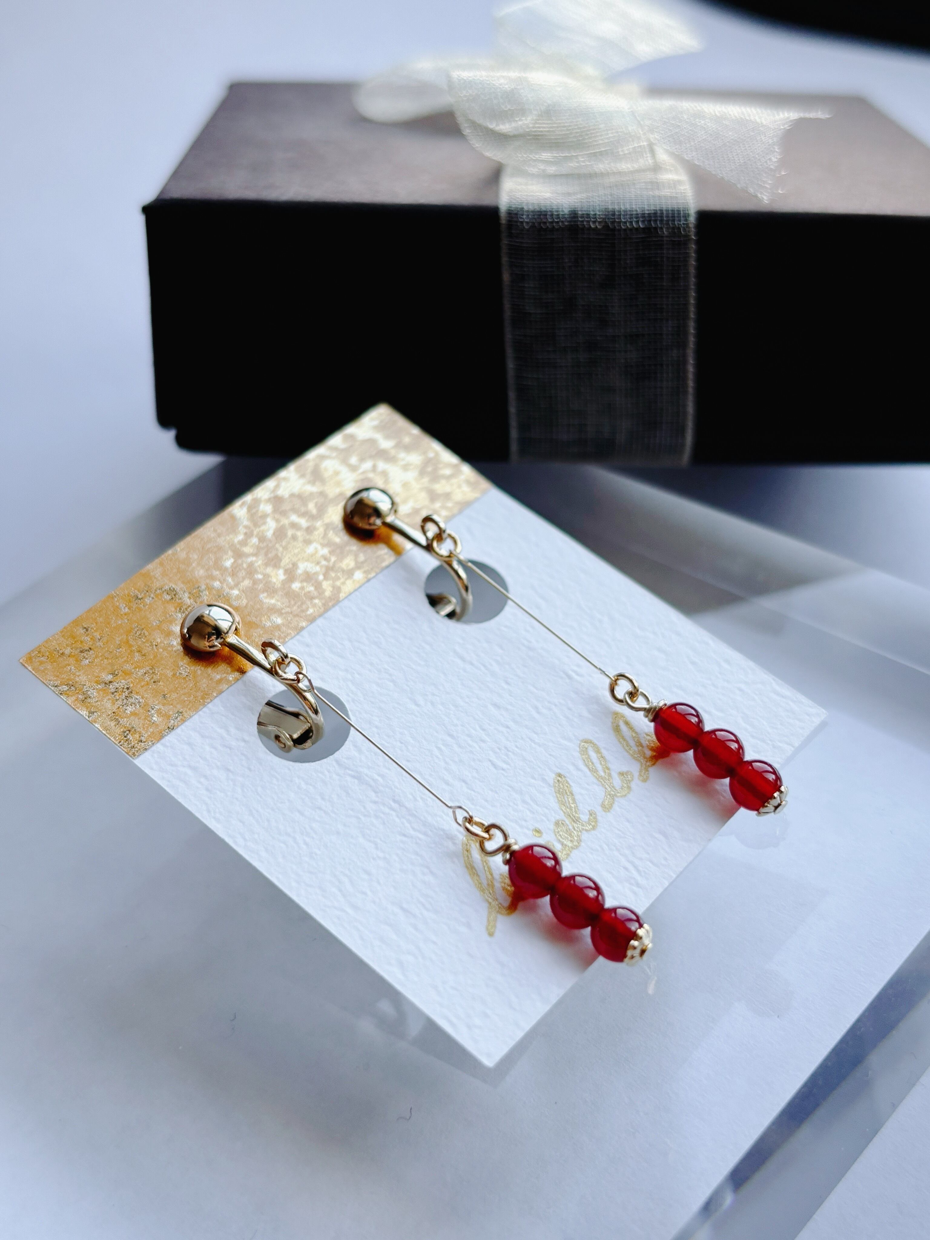 鮮やかカーネリアンの赤色は、シンプルなデザインでもしっかりとしたアクセントアクセサリーに。