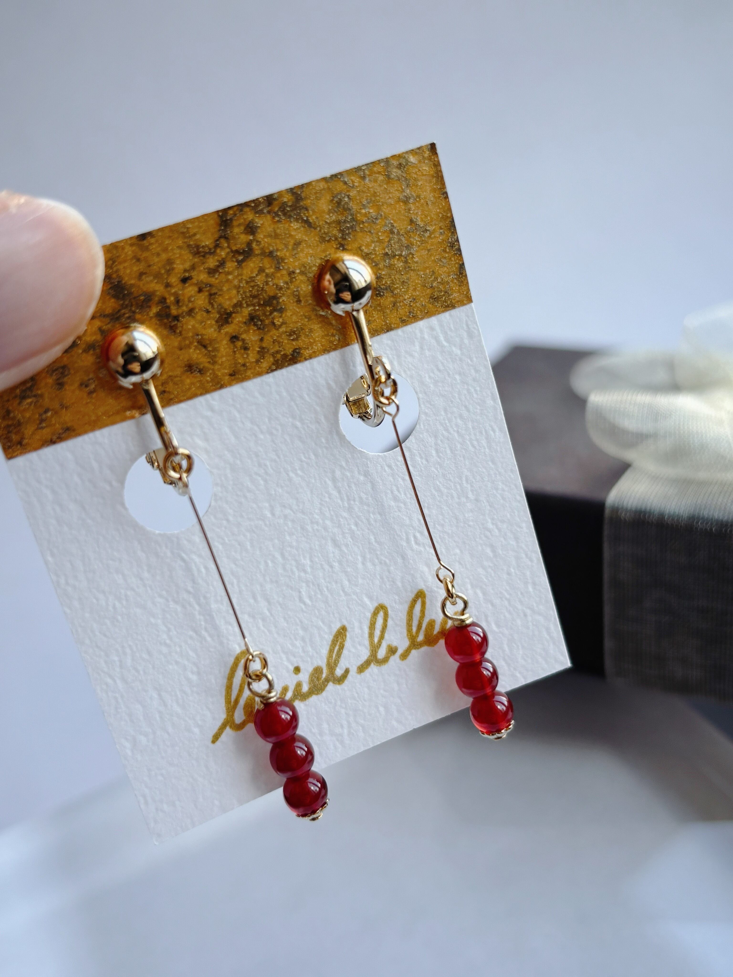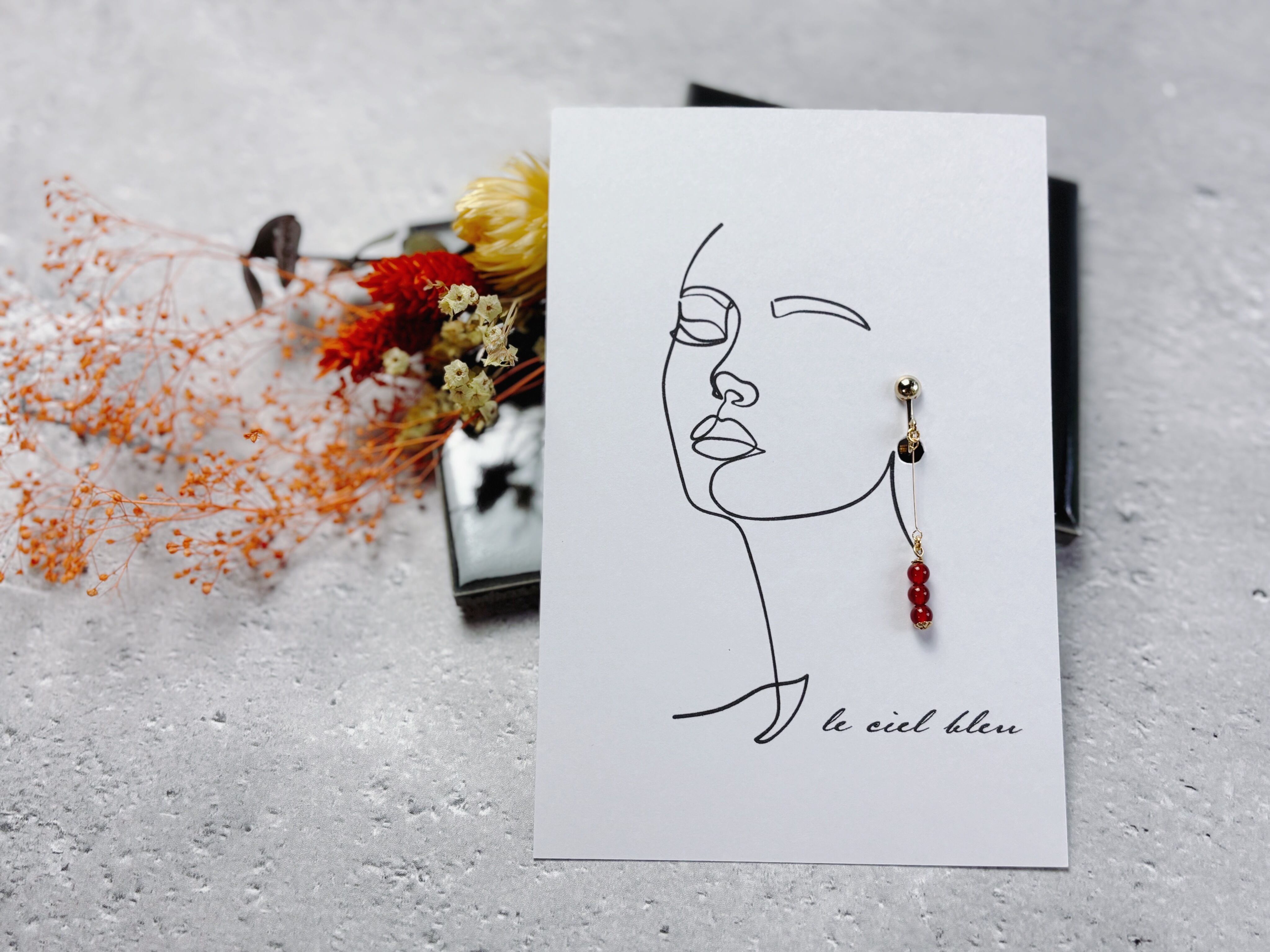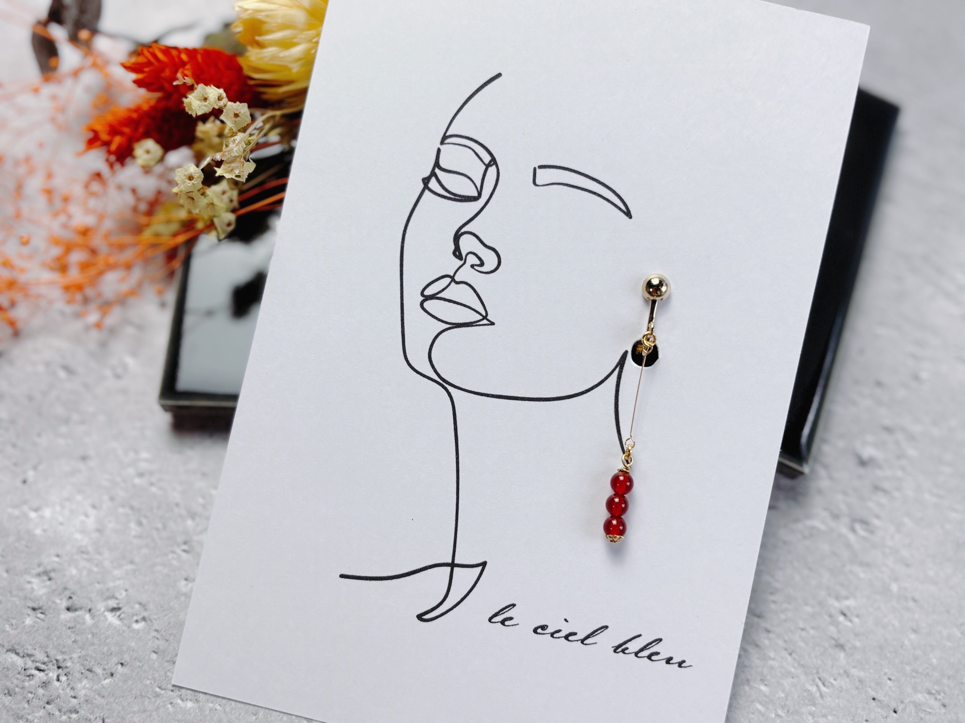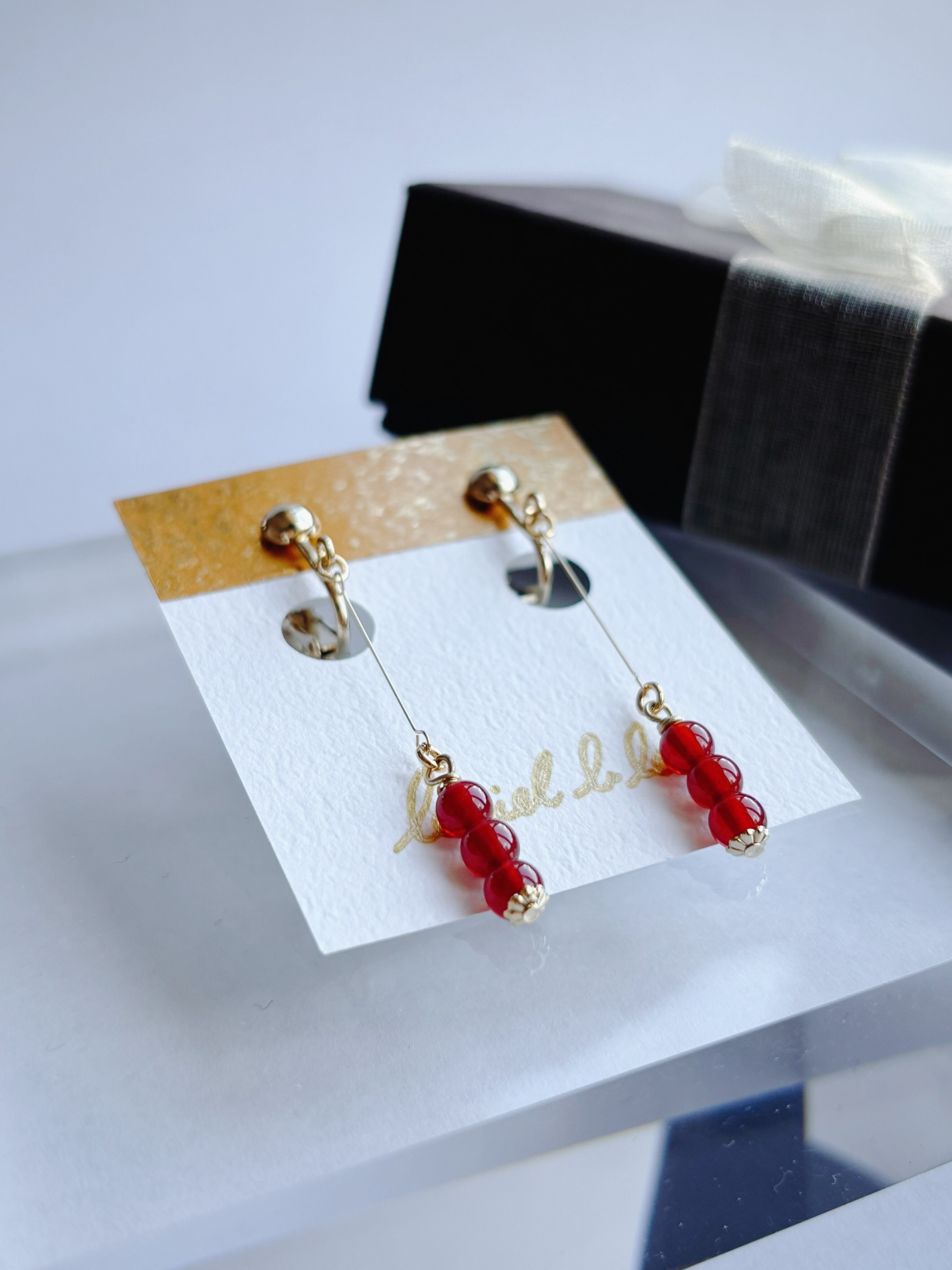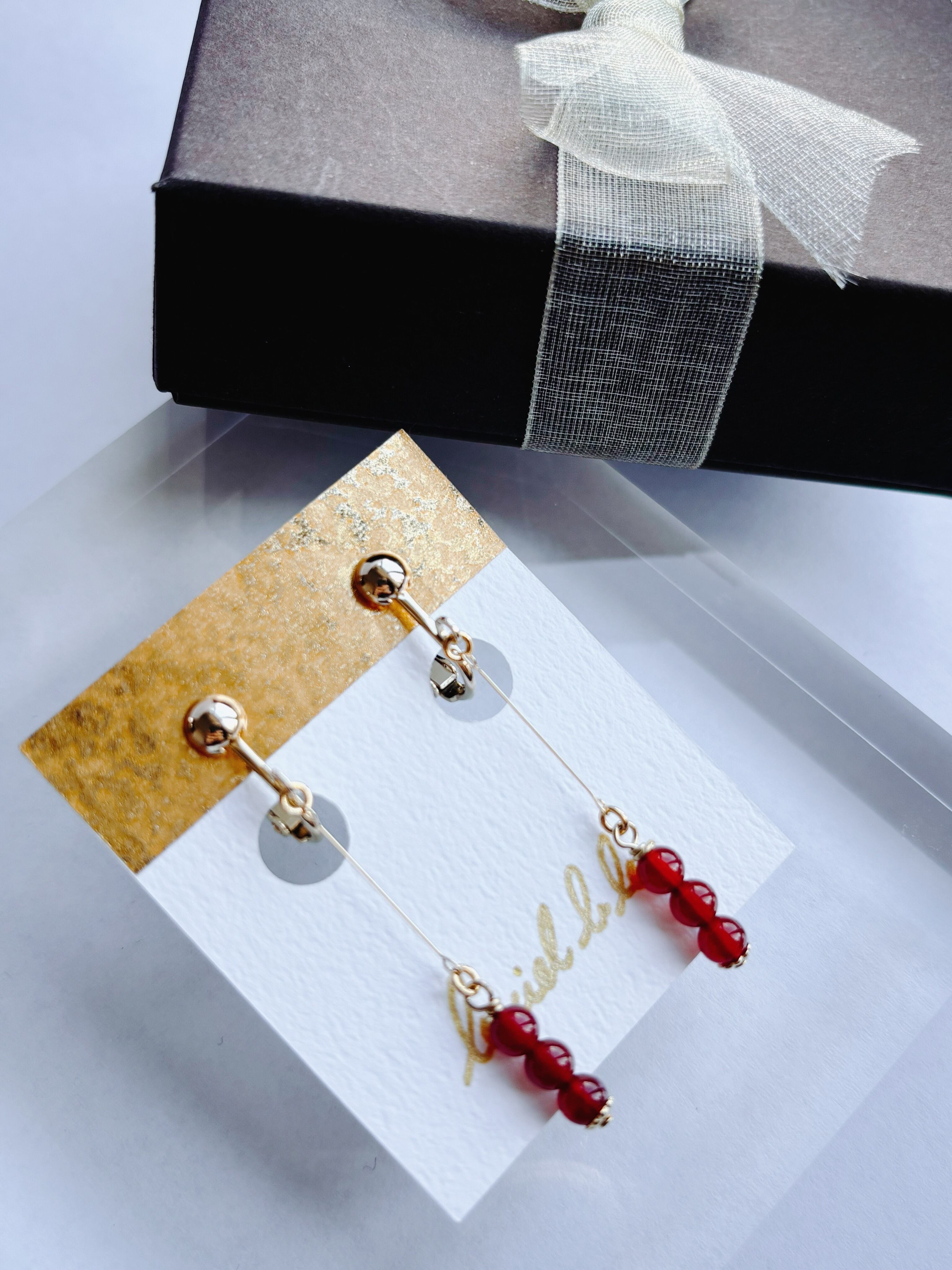 鮮やかカーネリアンの赤色は、シンプルなデザインでもしっかりとしたアクセントアクセサリーに。