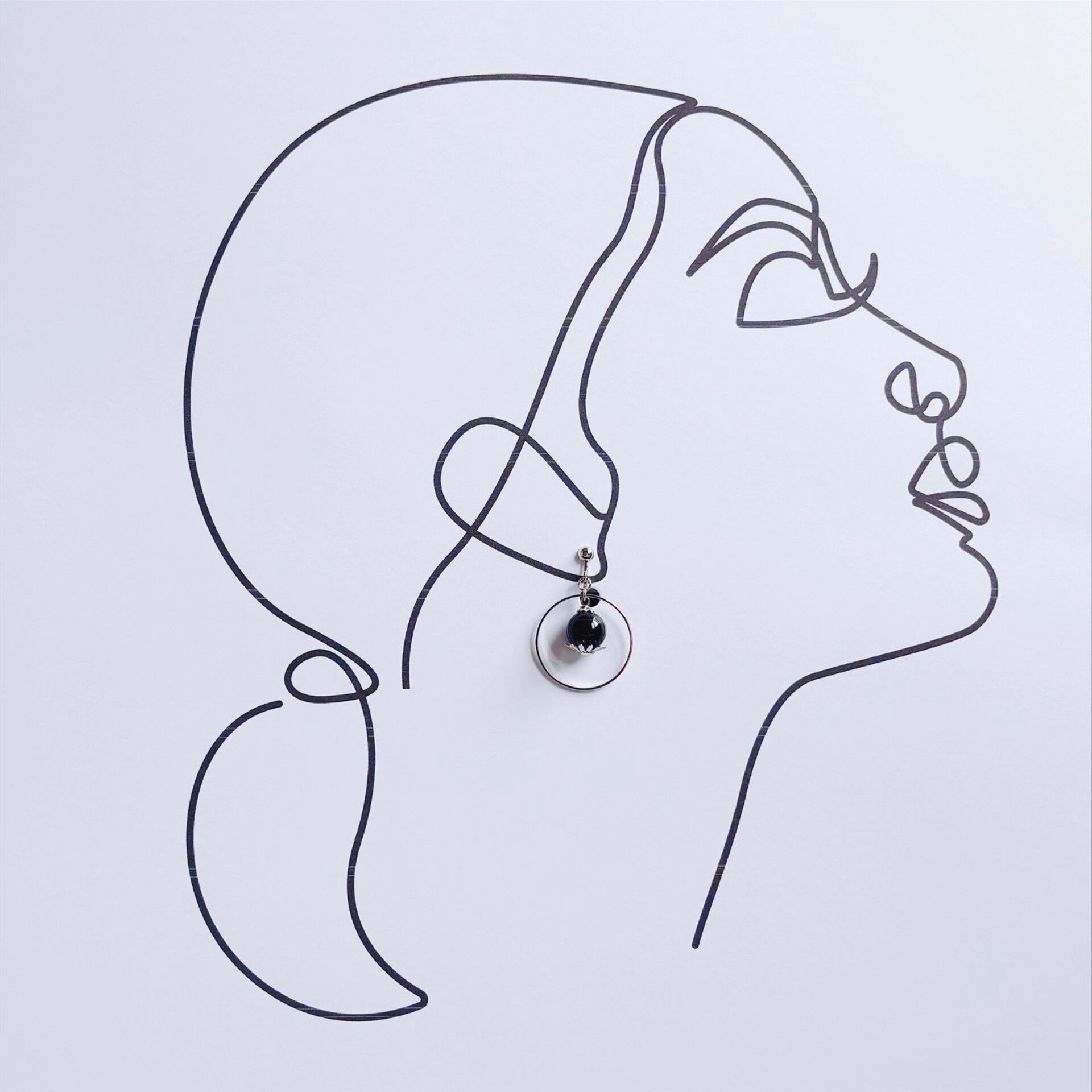 厚みのあるアクセサリーは写真左側のように1枚に両耳をつけたデザインにつけて、厚みのないアクセサリーは写真右側のようにそれぞれのモデルになってくれているデザインに片耳をつけて2枚にしてお送りいたします。