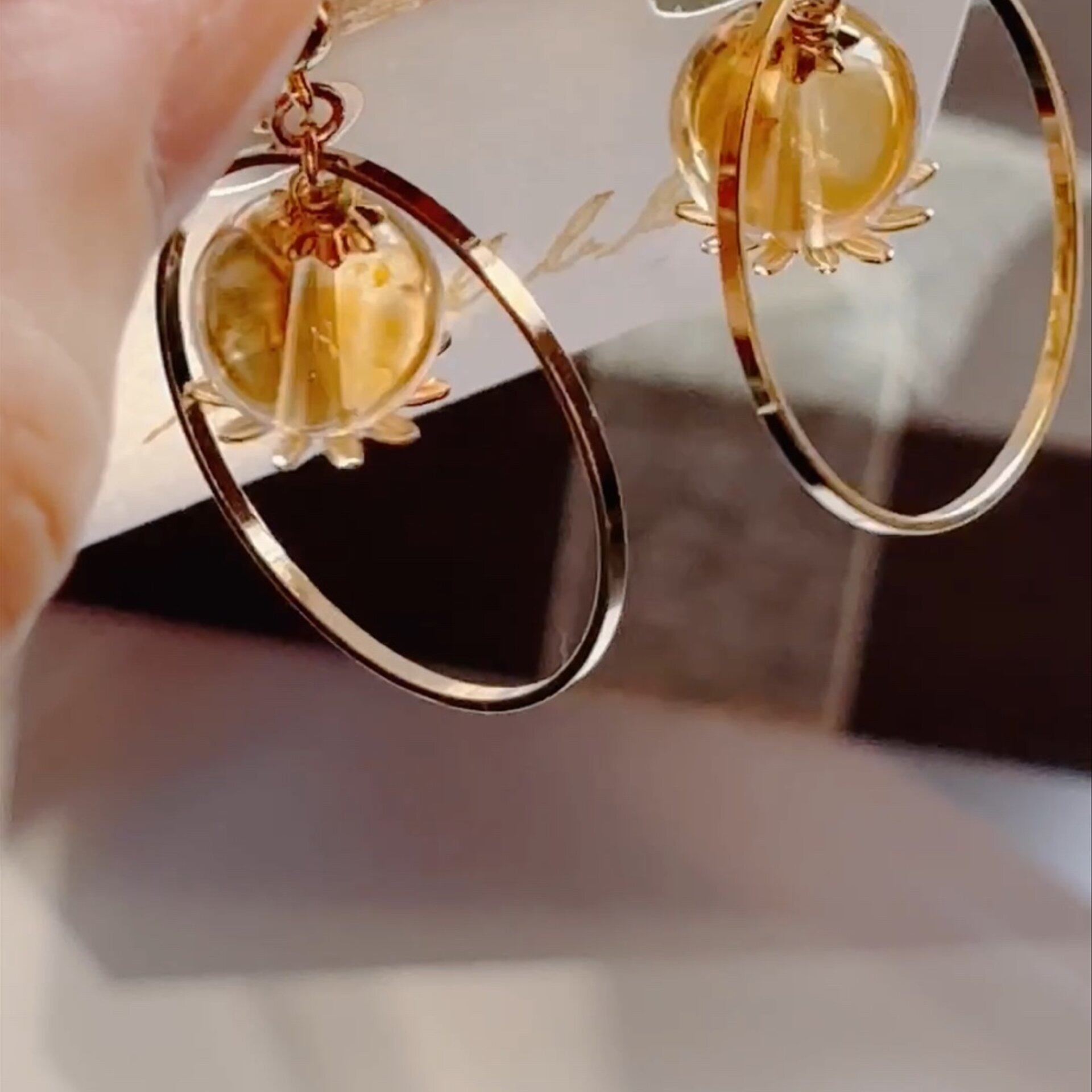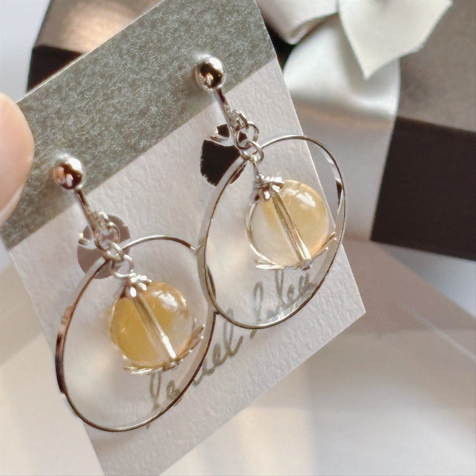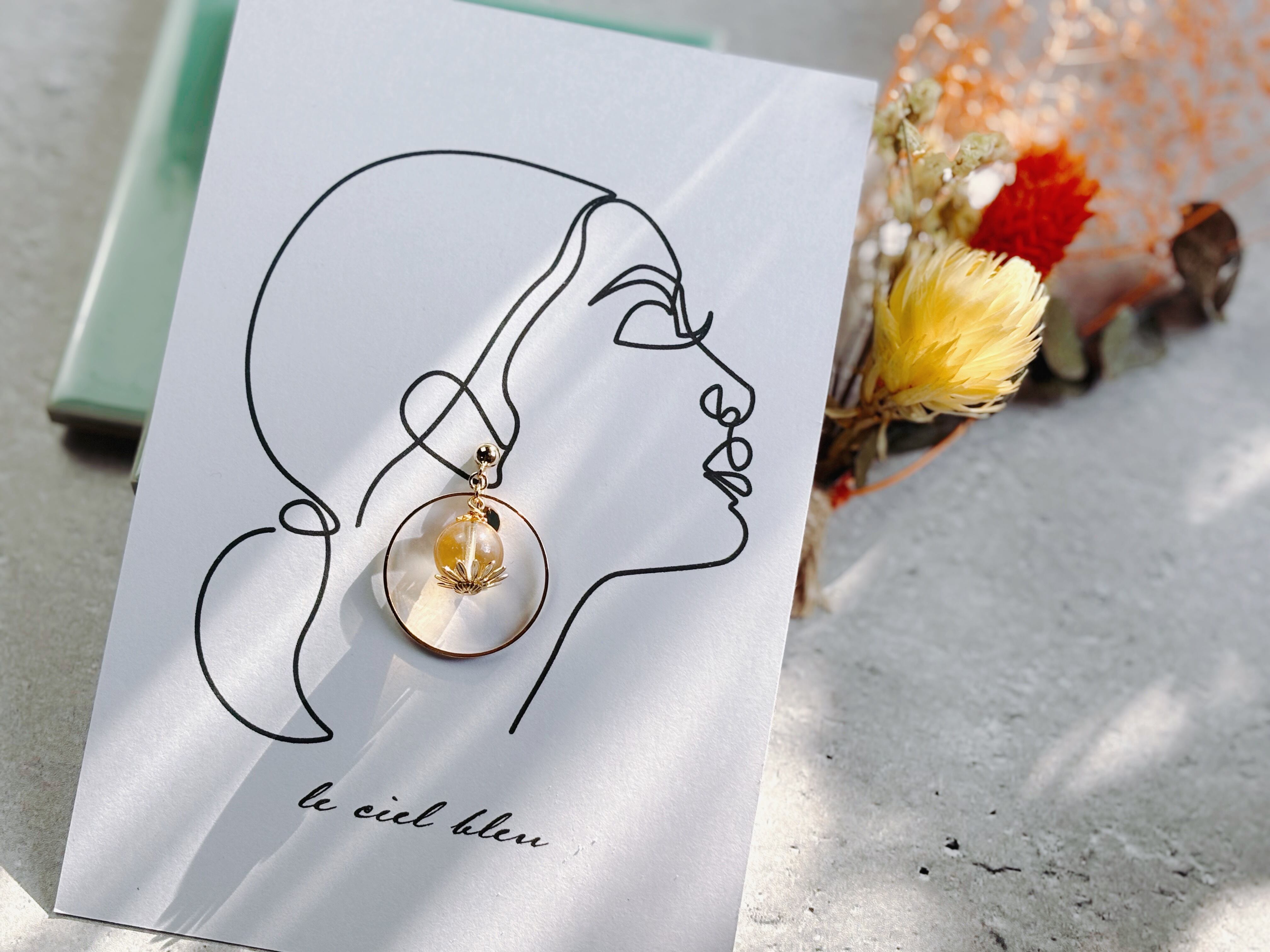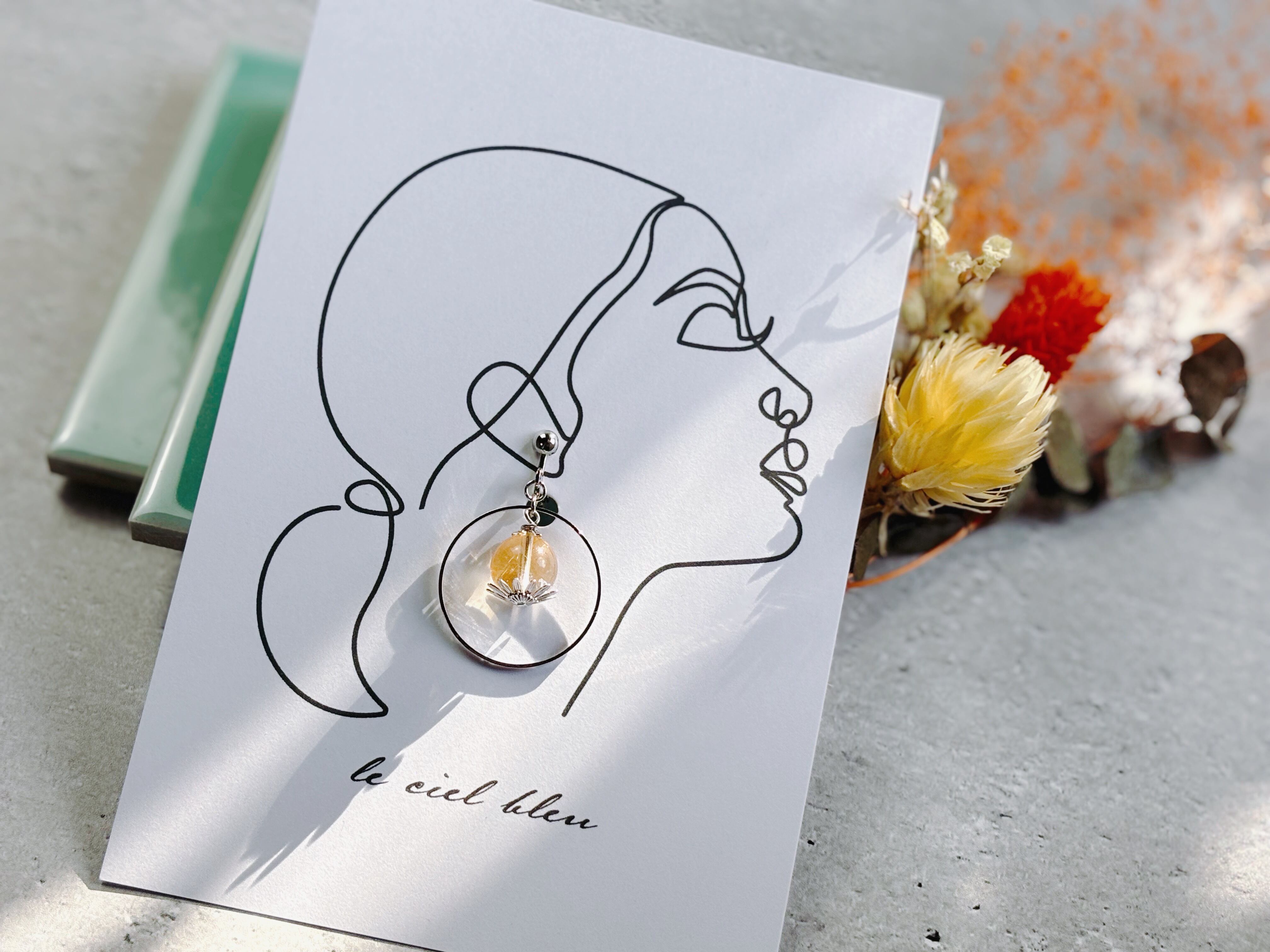 天然石とリングの揺れイヤリング シトリン ゴールド/シルバー