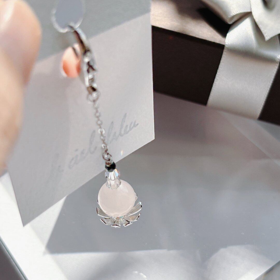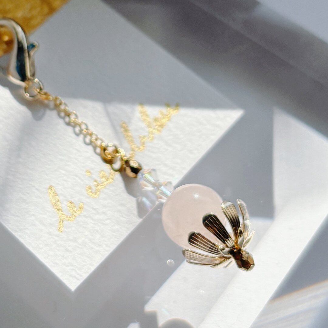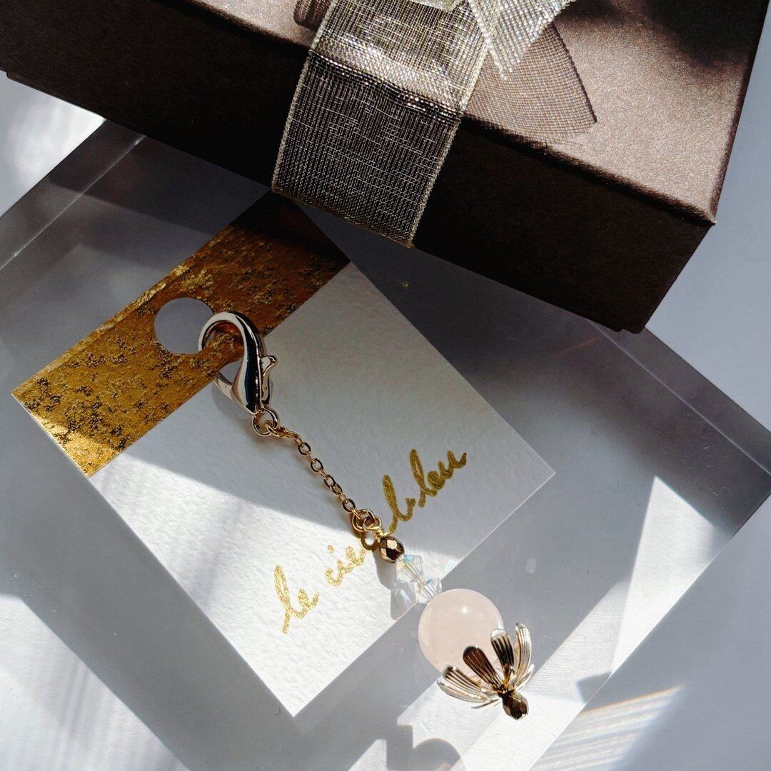 こちらのキーホルダーは【大人華やか】をモチーフに、女性の魅力を高めると人気の天然石【ローズクォーツ】の10mmという大粒を使用し、どの年代の方でもおしゃれにカバンやキーケースなどに付けていただけるデザインです。