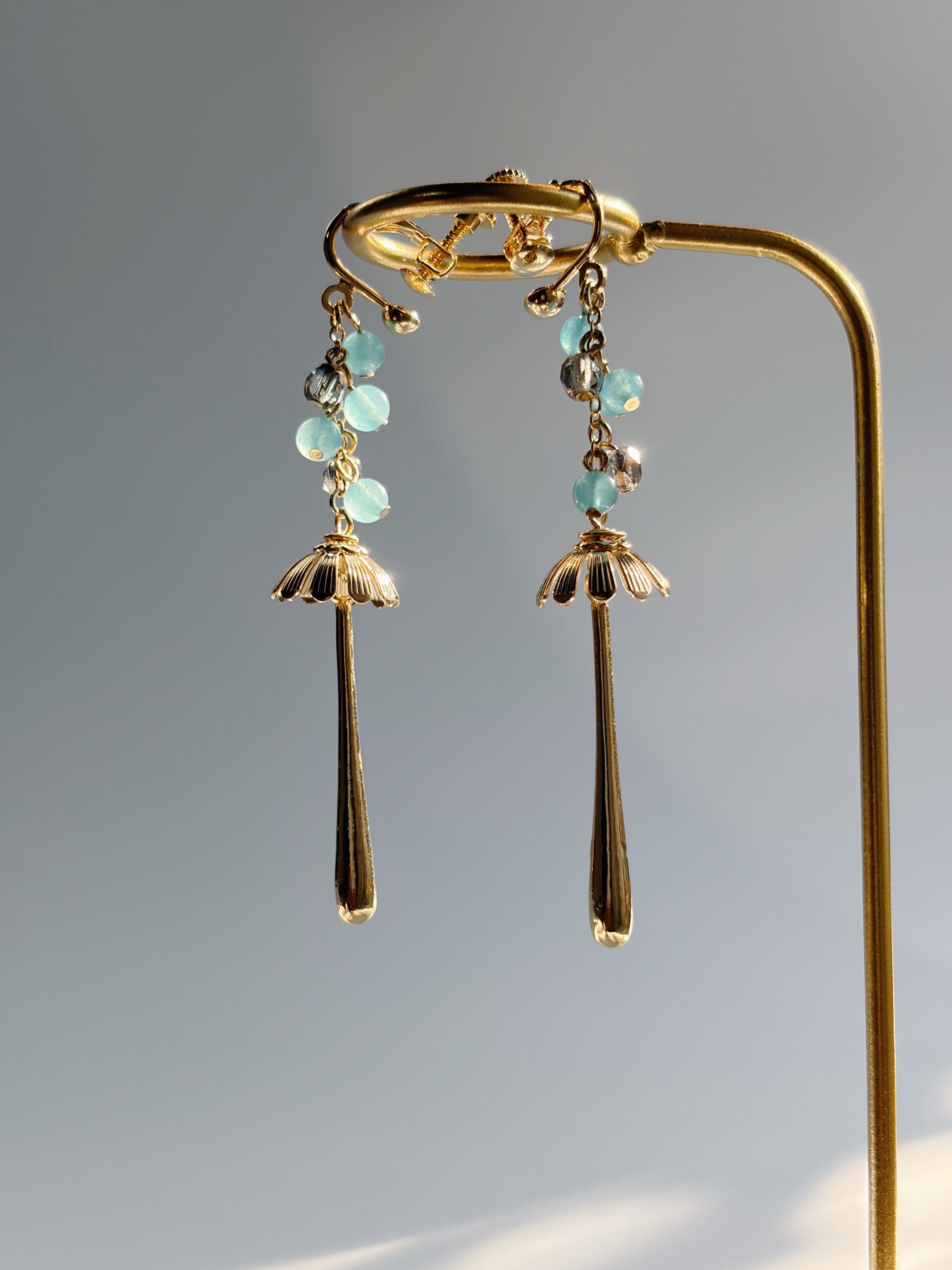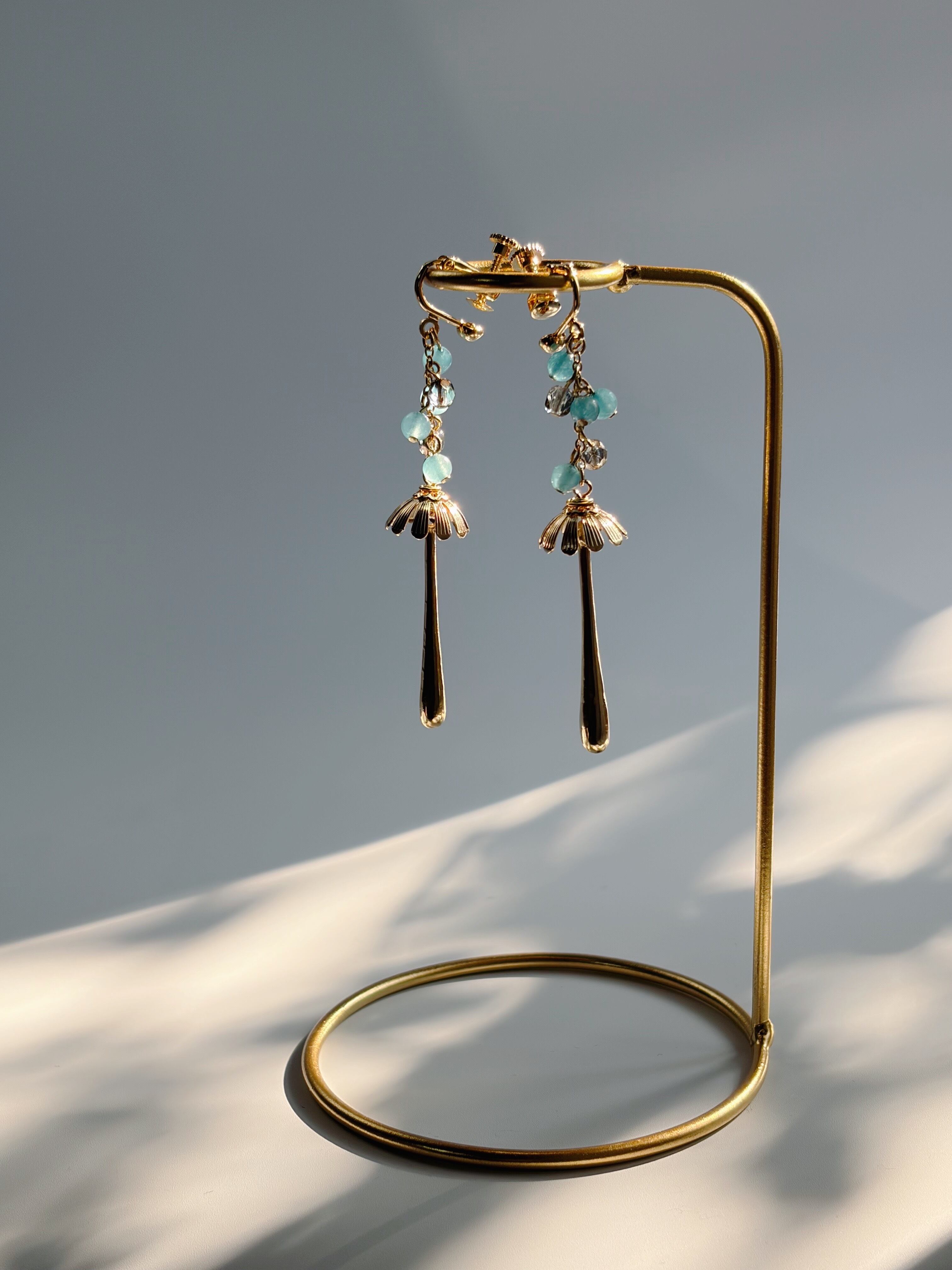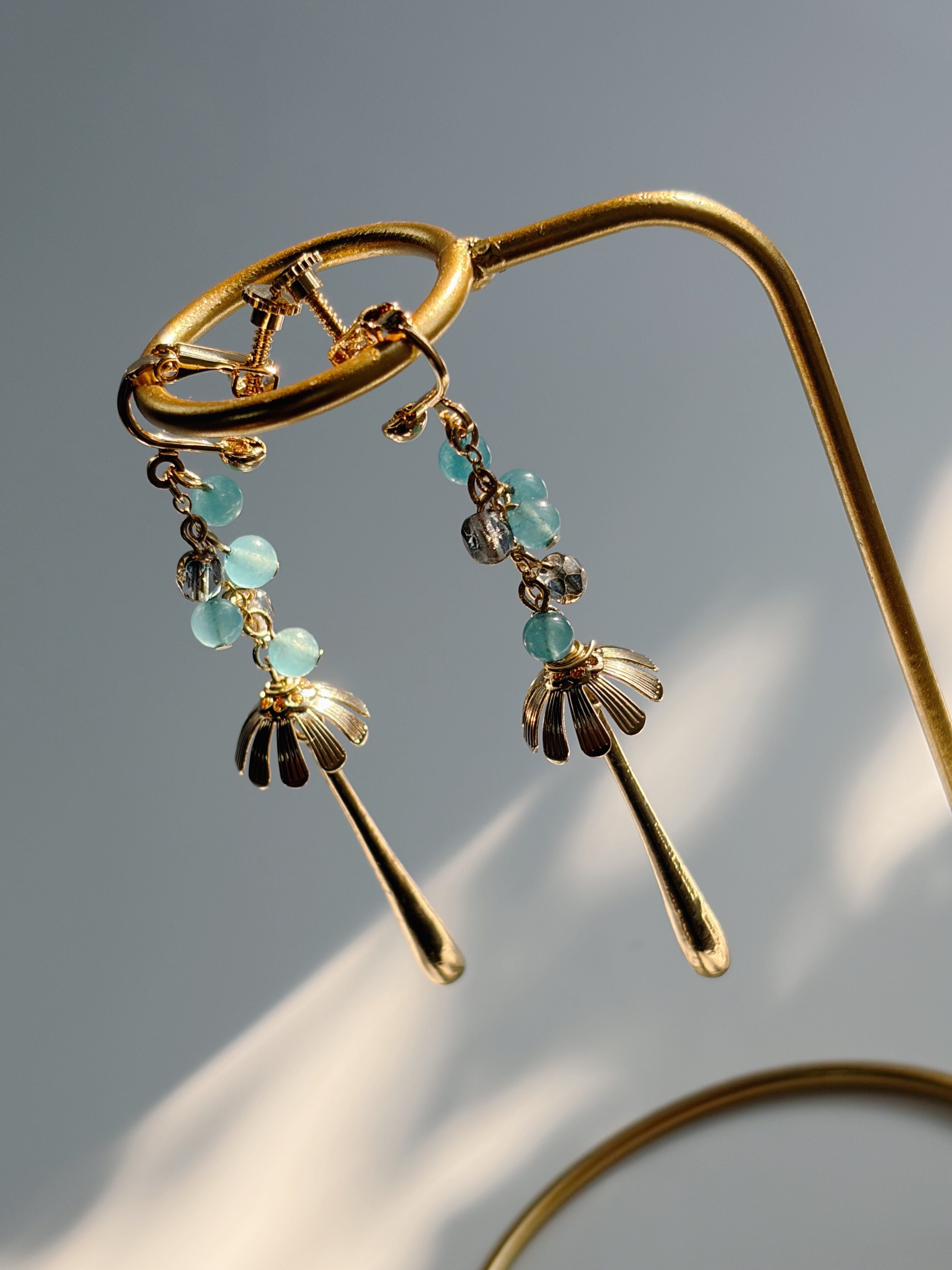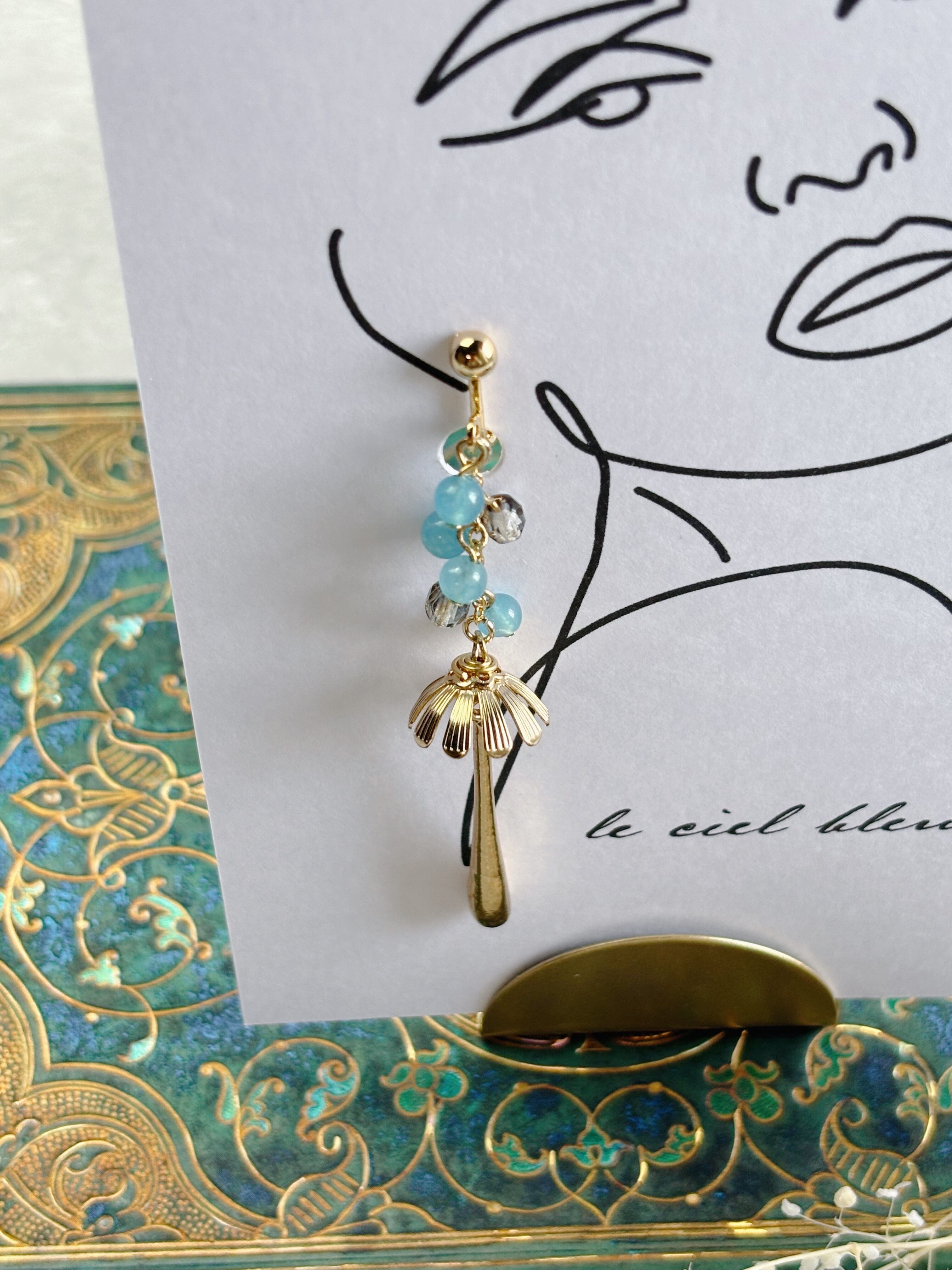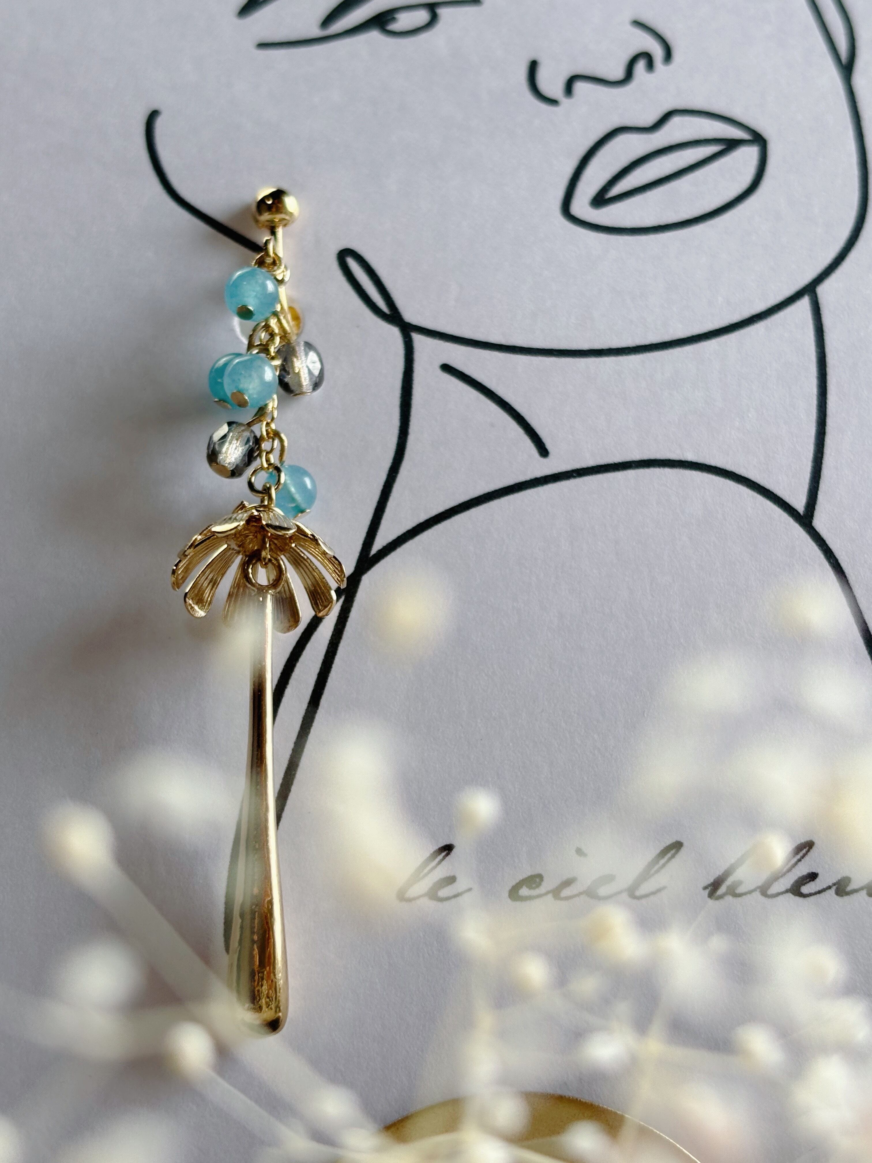 雨の日のイヤリング 染クォーツァイト アクアブルー ゴールド/シルバー