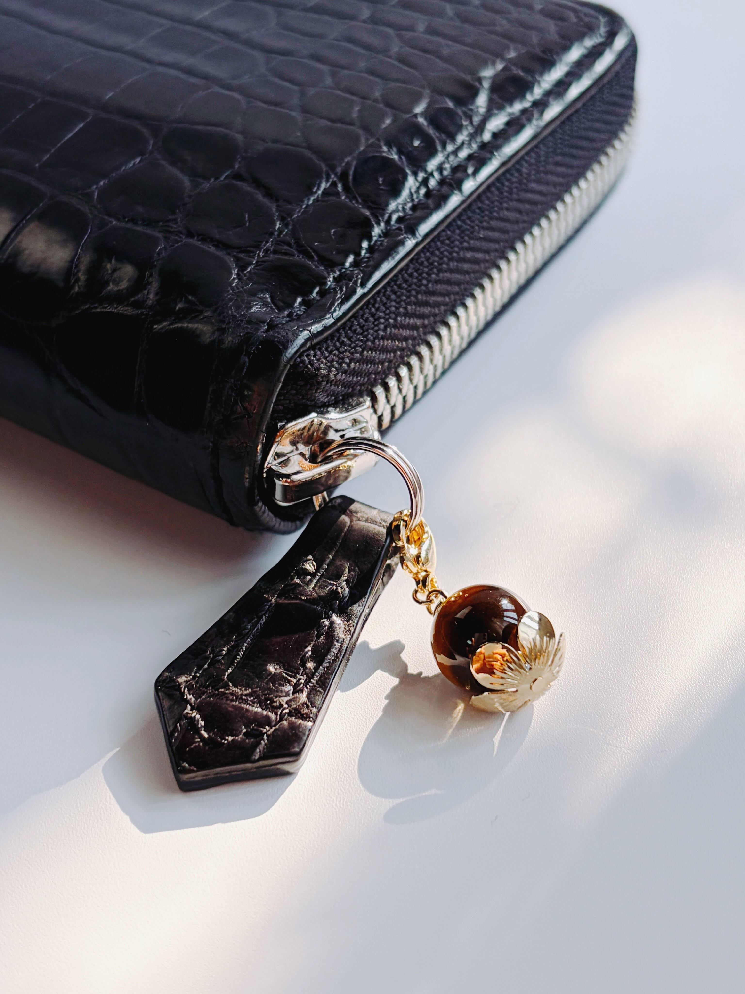お財布を開くときはチャームではなく、ファスナー部分を引っ張り開けるようにお願いします。