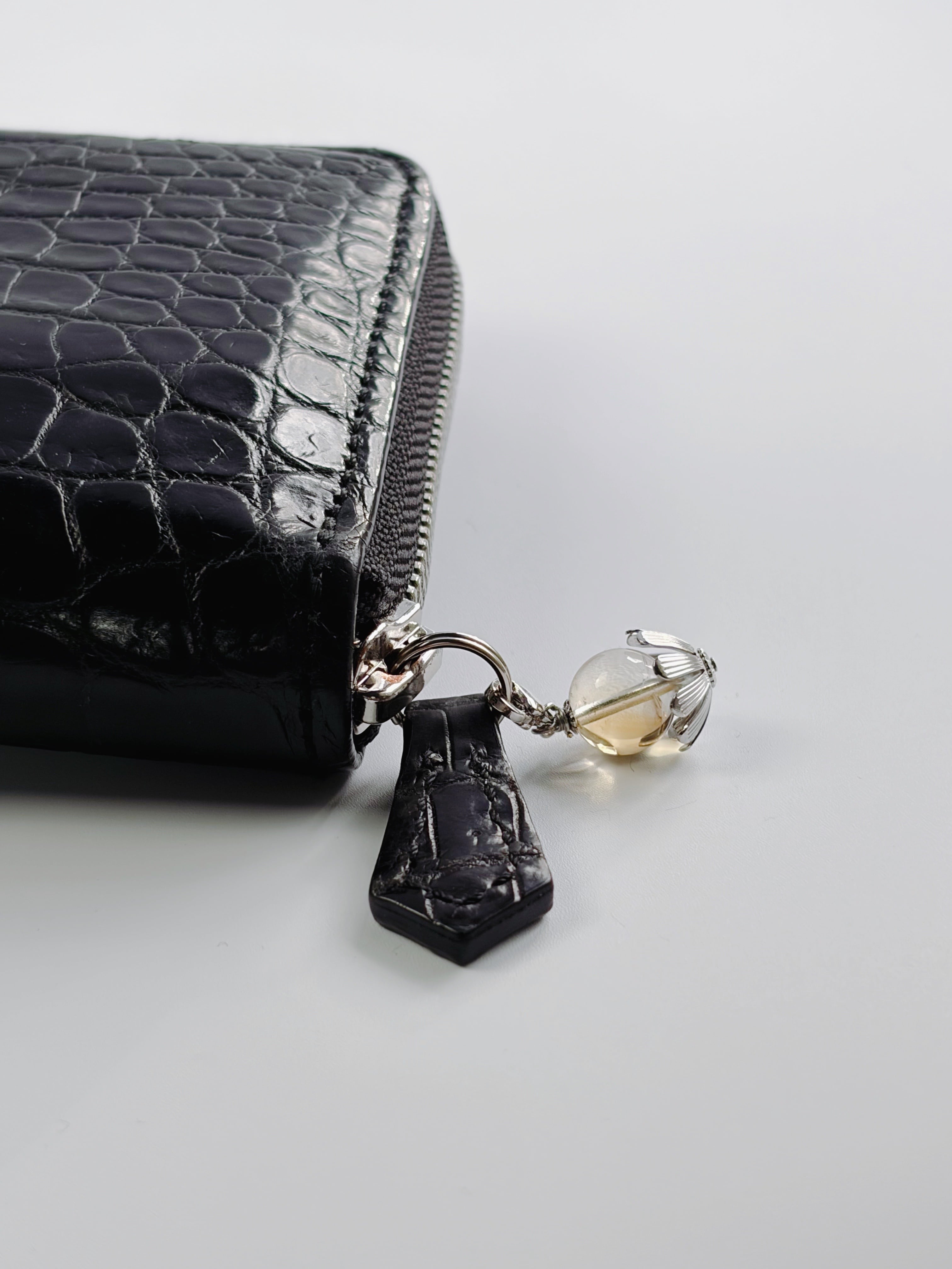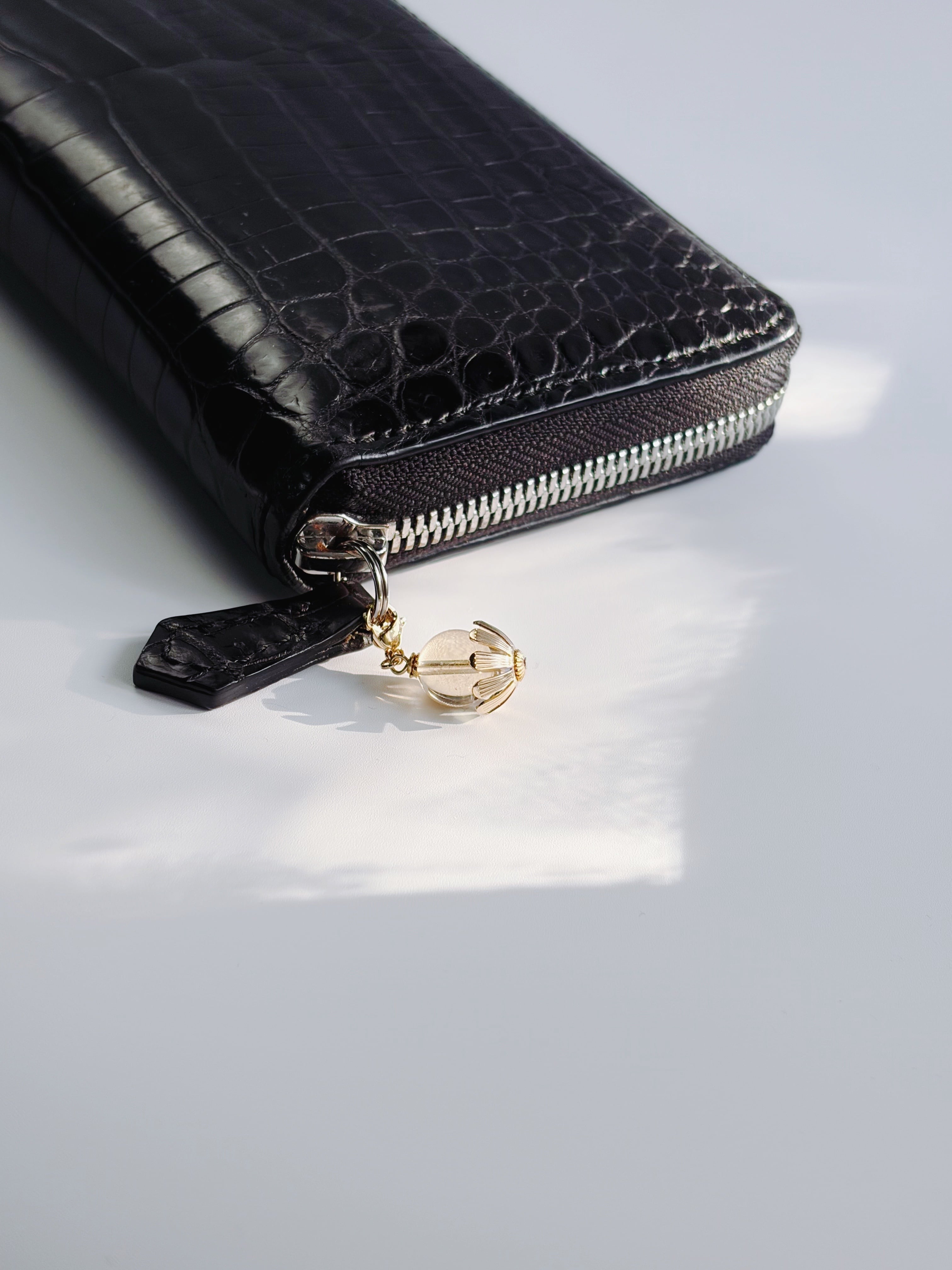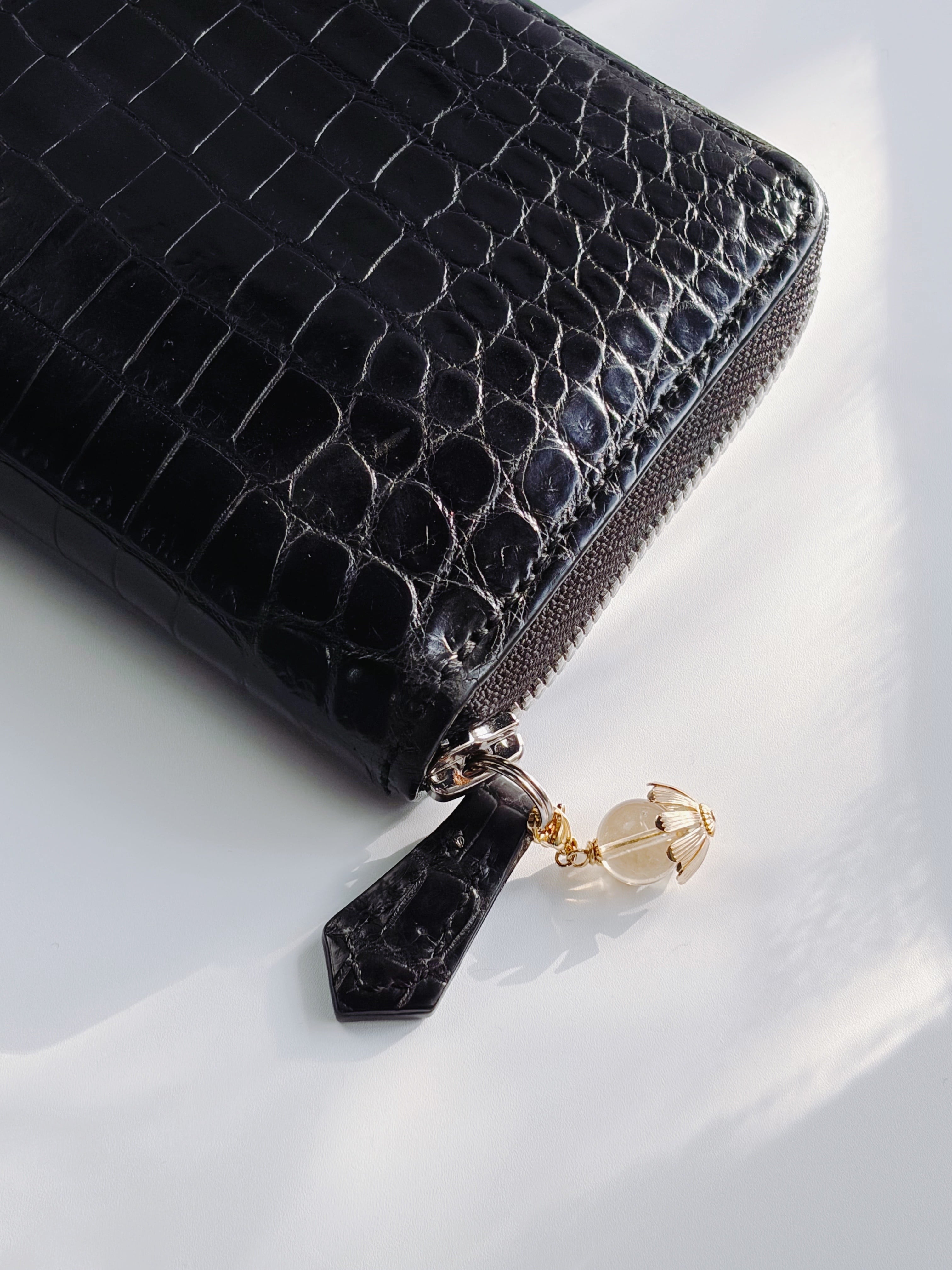 お財布を開くときはチャームではなく、ファスナー部分を引っ張り開けるようにお願いします。