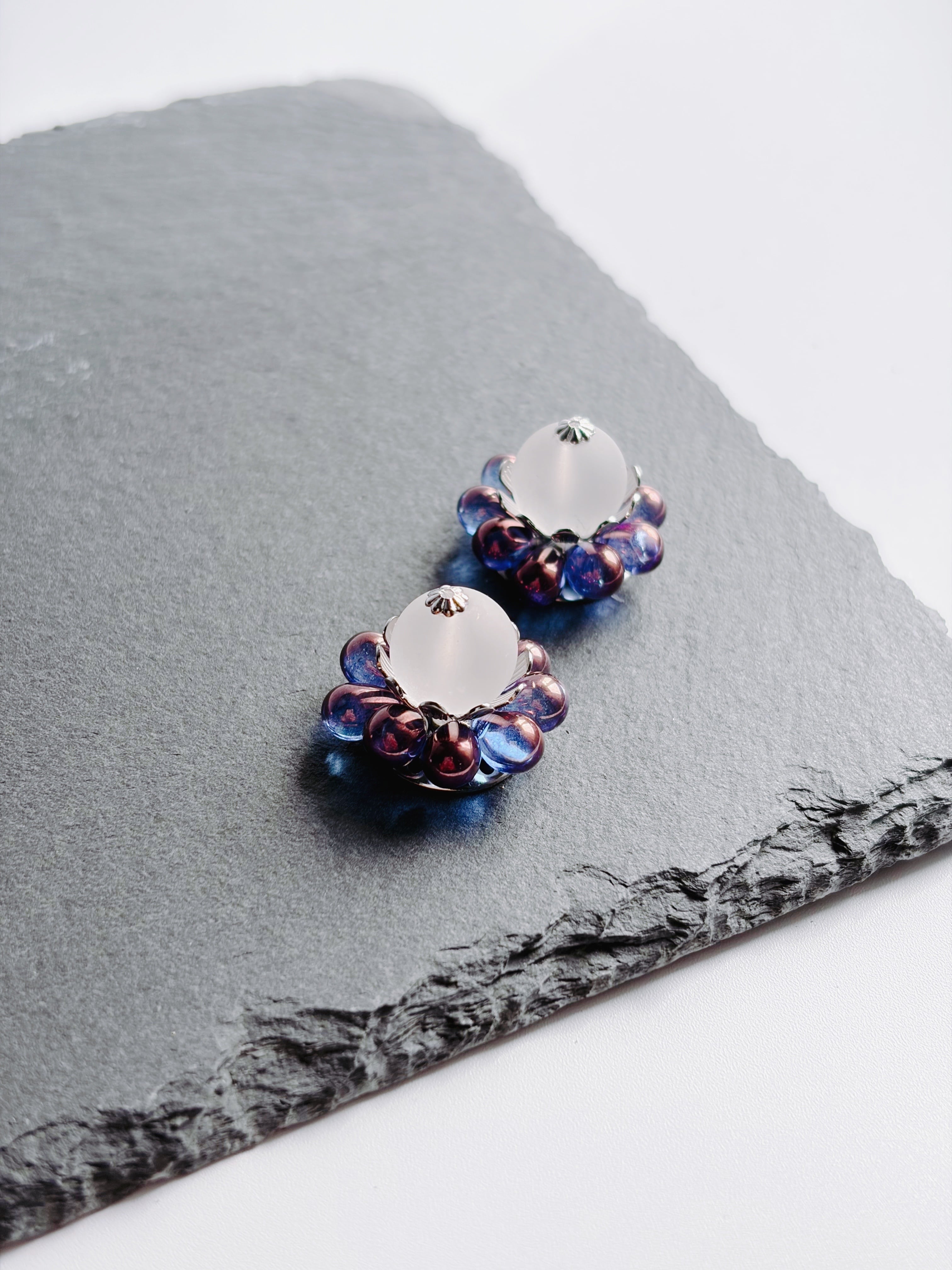 耳元でそっと開花するのは、大粒10mmのフロスト水晶。