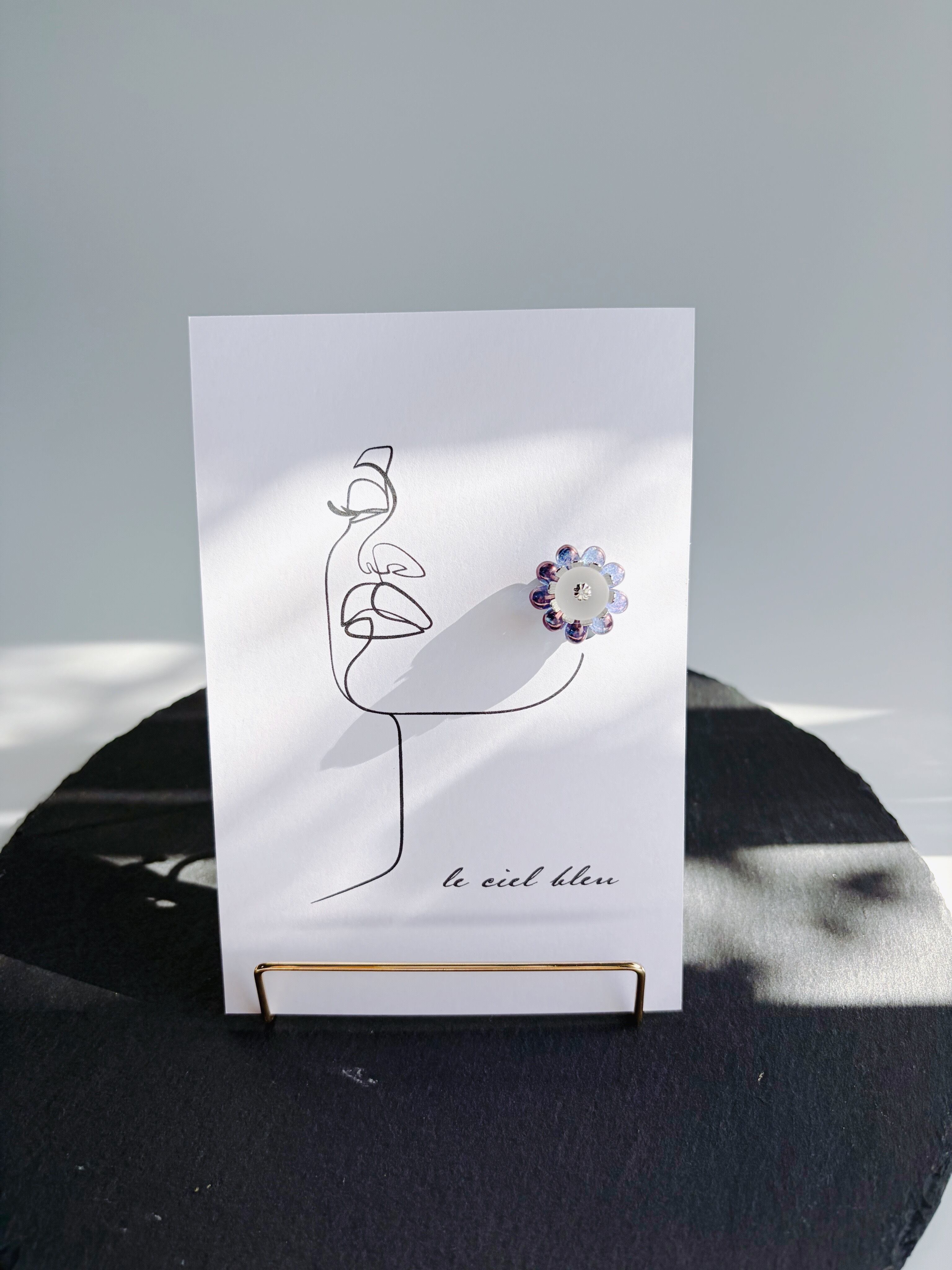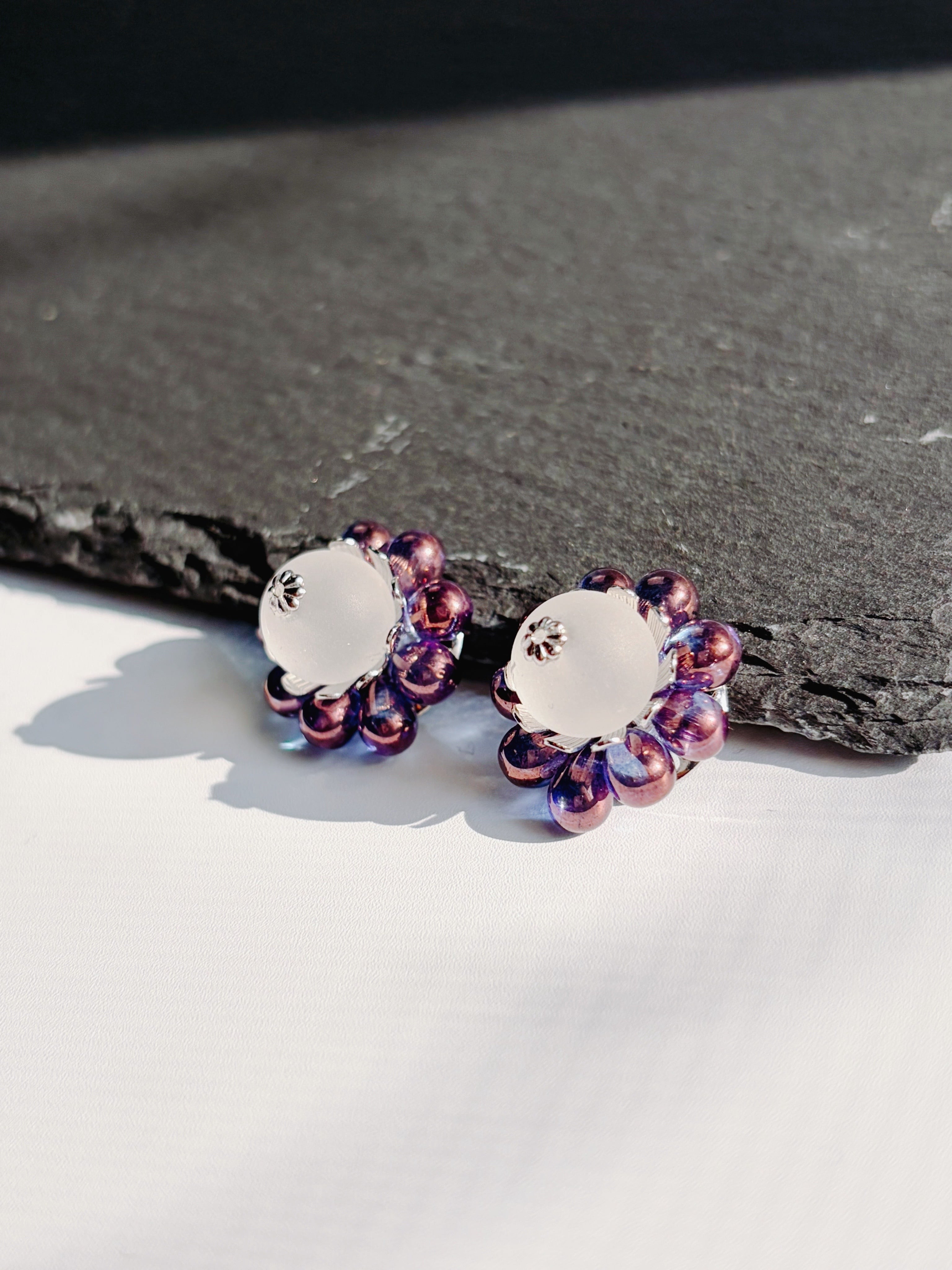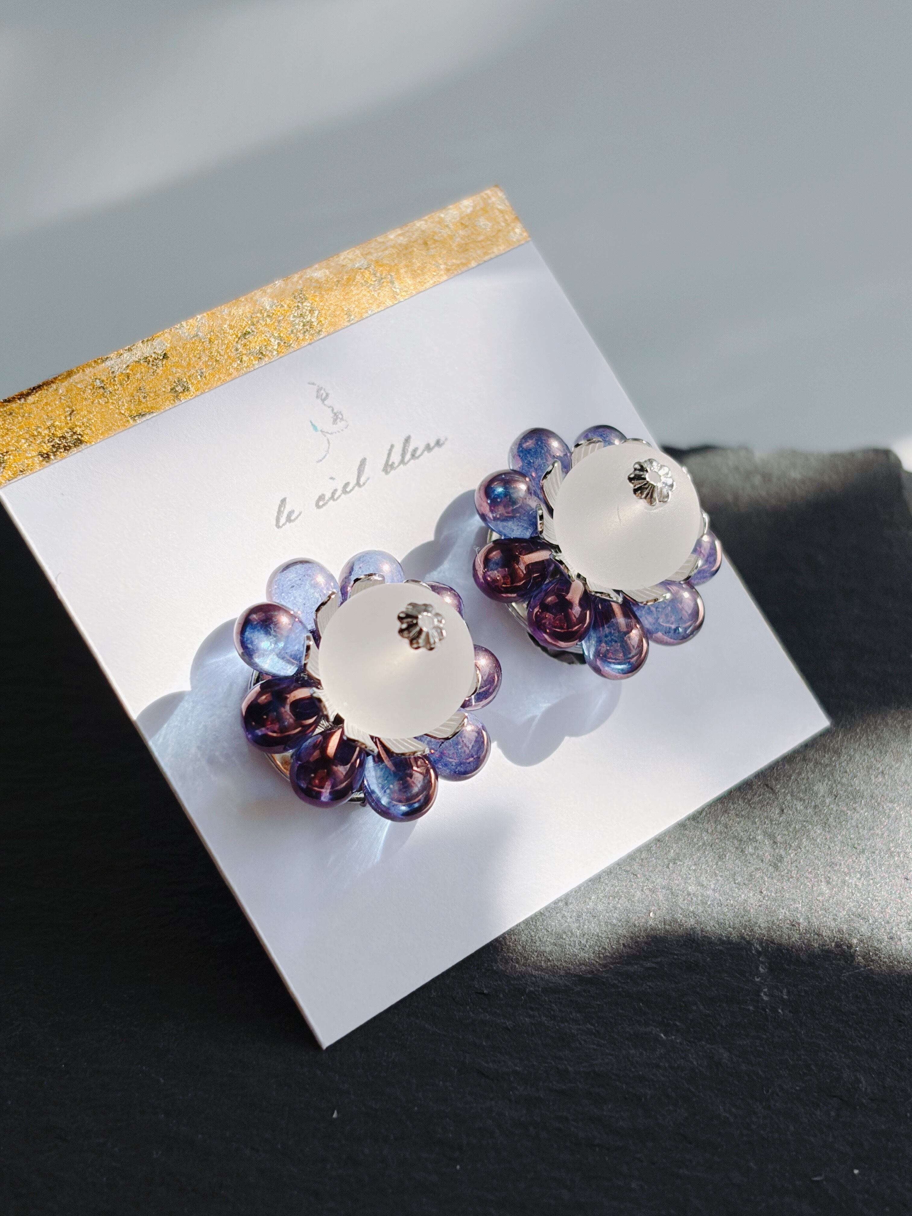 お花の中心には、柔らかな質感の水晶を。あえて光を透過させず、内側にふんわりと溜め込むマットな白は、お顔周りに落ち着いた品格を添えてくれます。10mmの大粒だからこそ叶う、大人の余裕を感じさせるアクセントに。