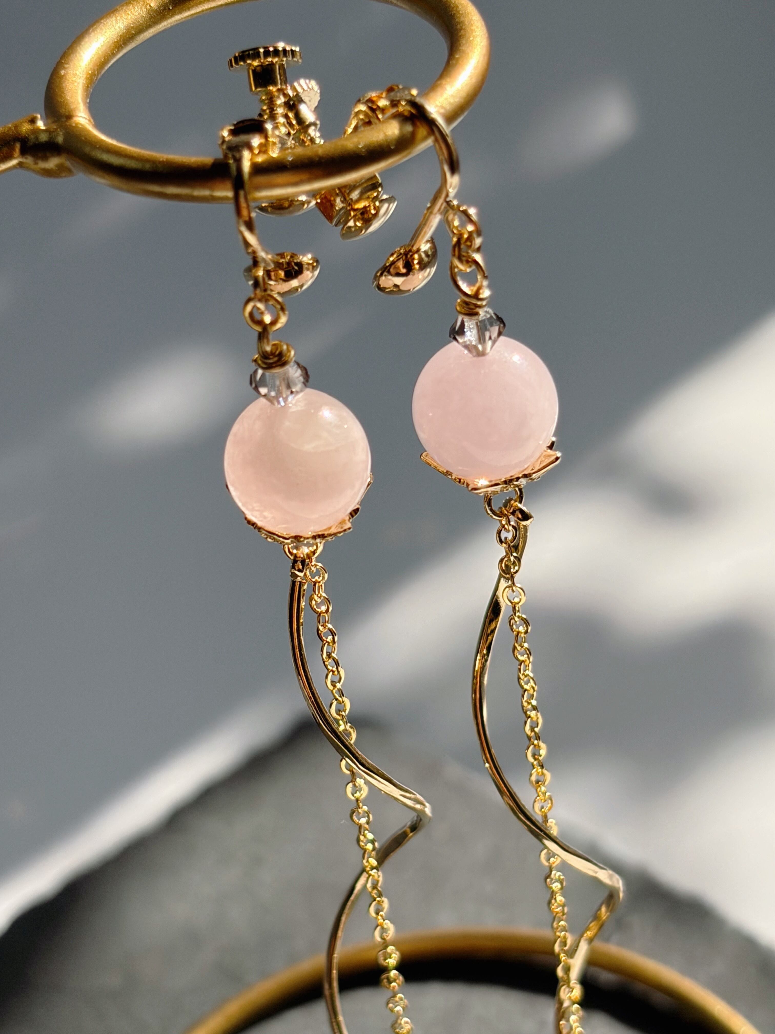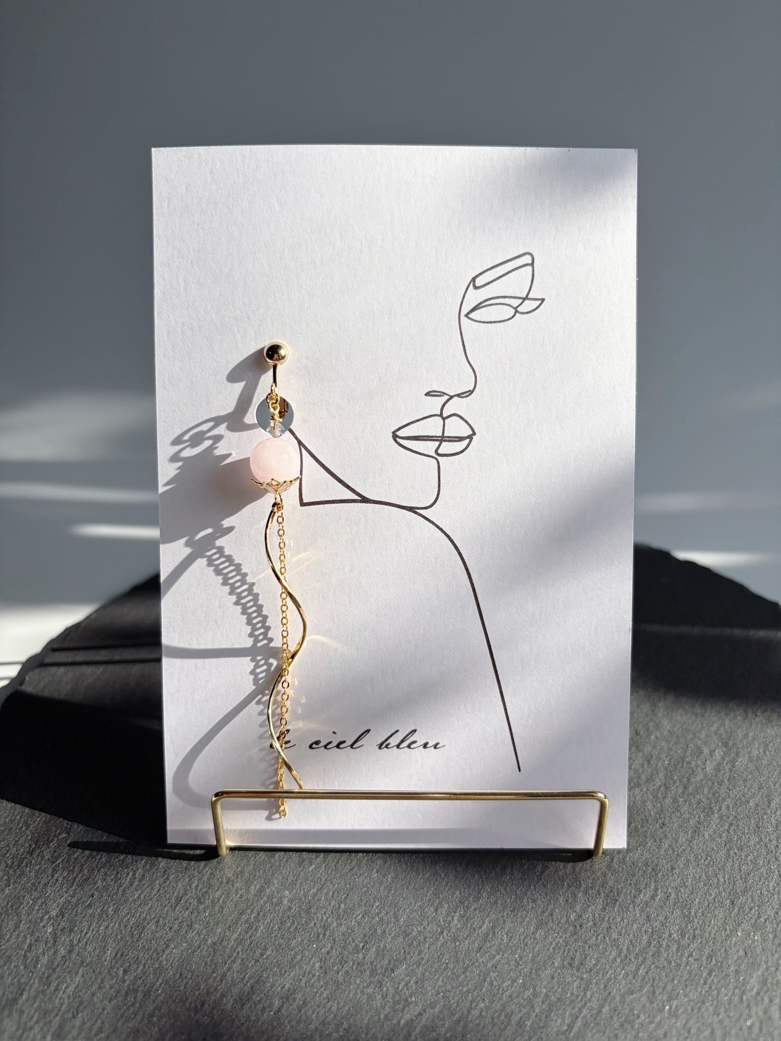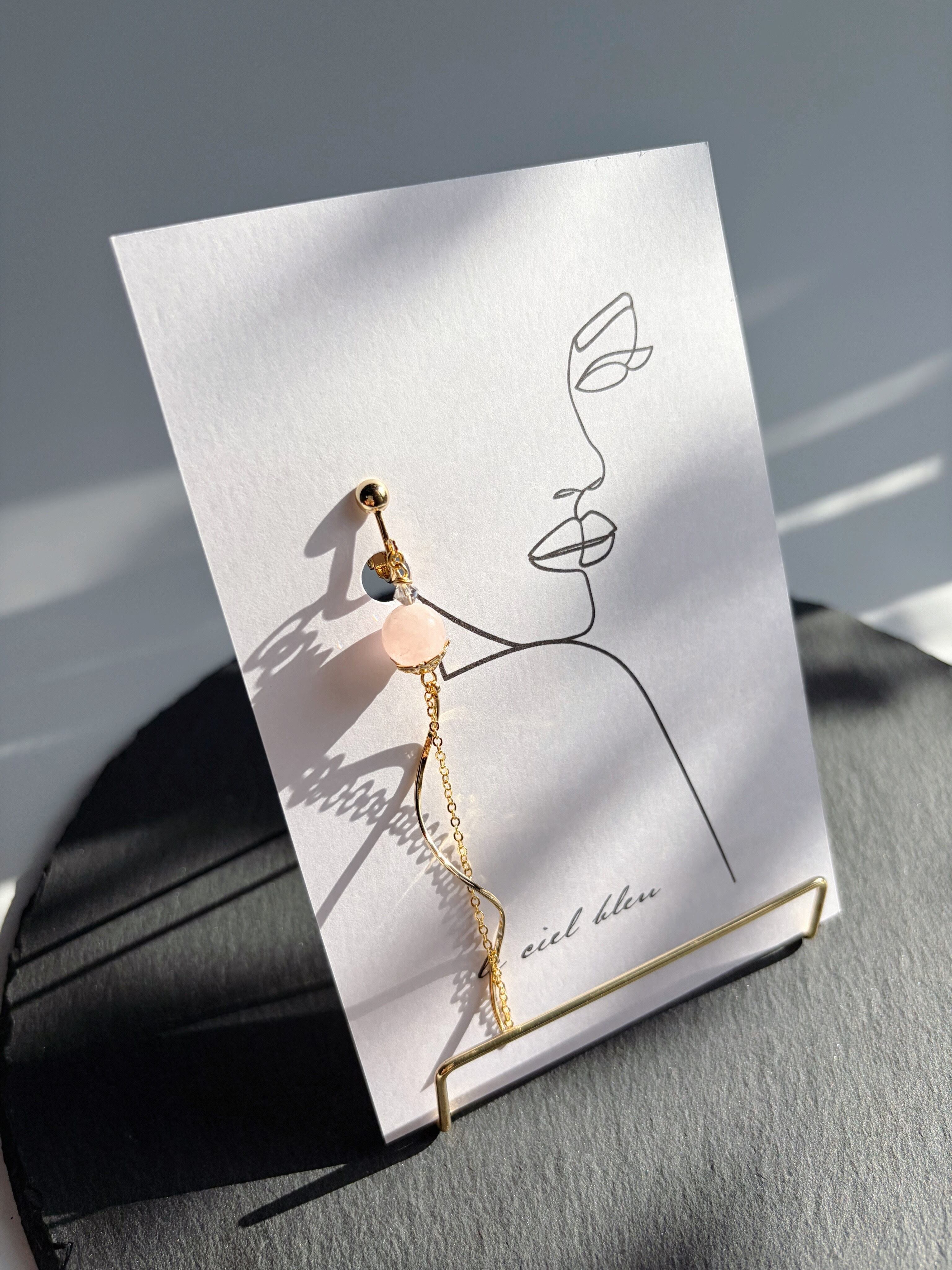 「大人ピンク」を軽やかに纏う、洗練のロングイヤリング。