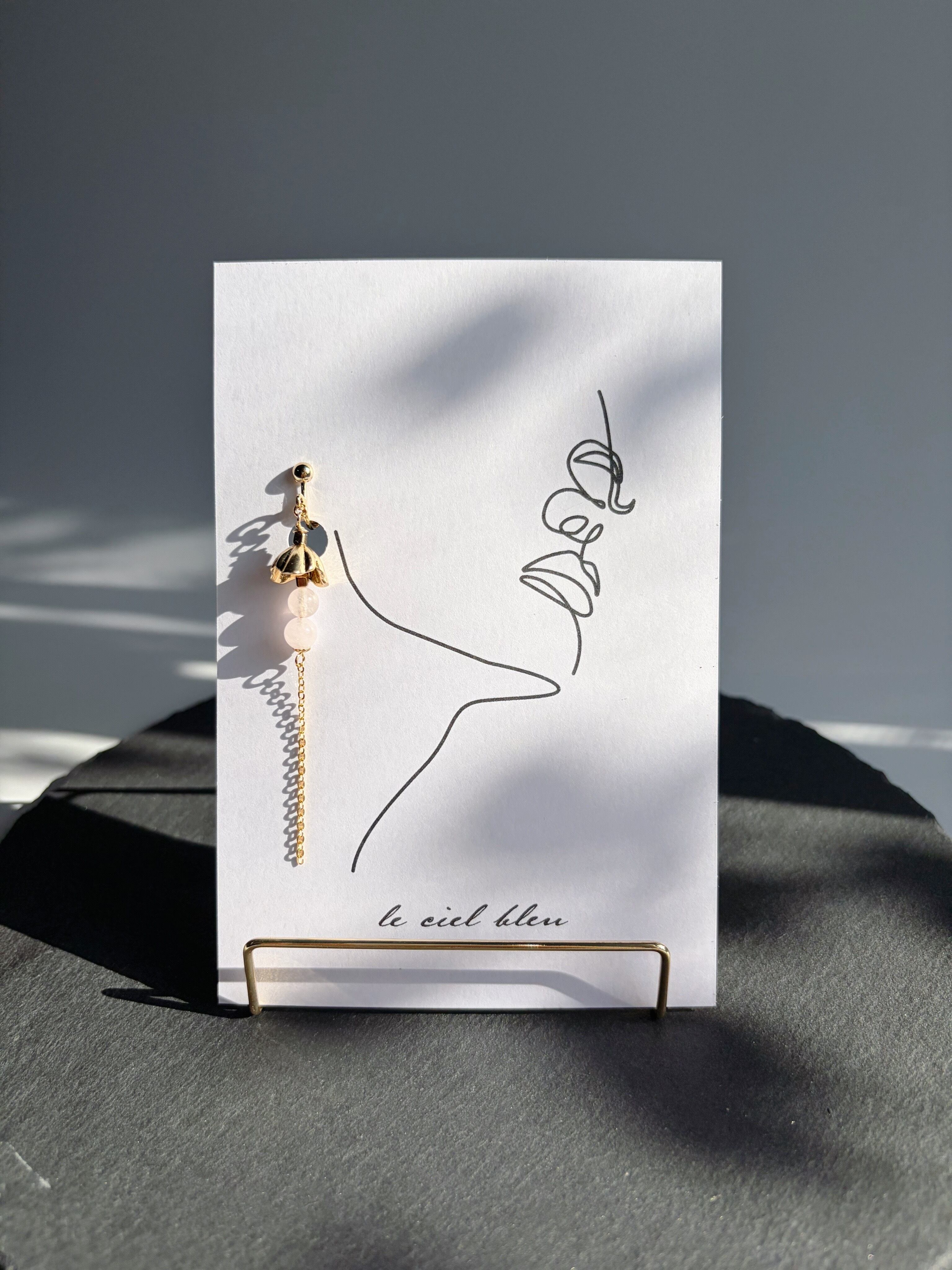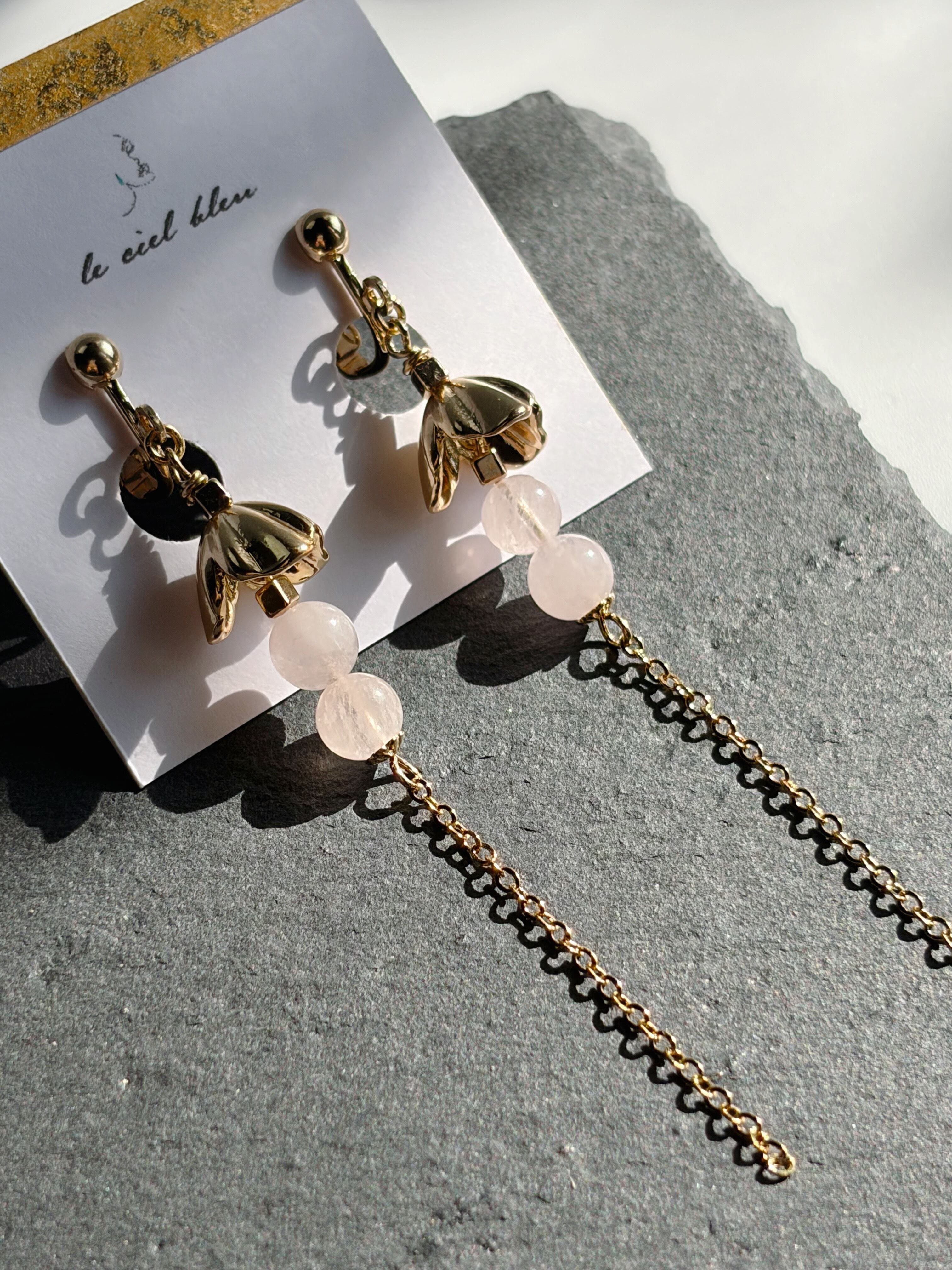 肌を明るく魅せる繊細なピンクと、耳元で揺れるたびに溢れる多幸感。