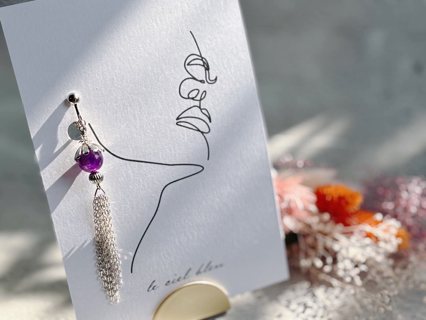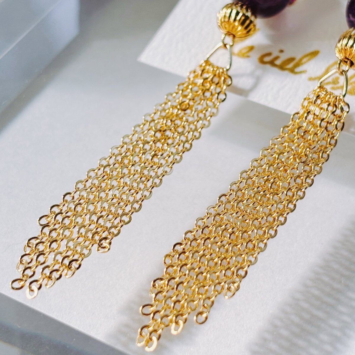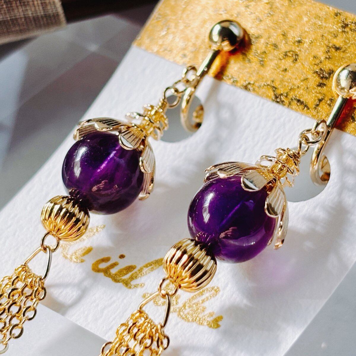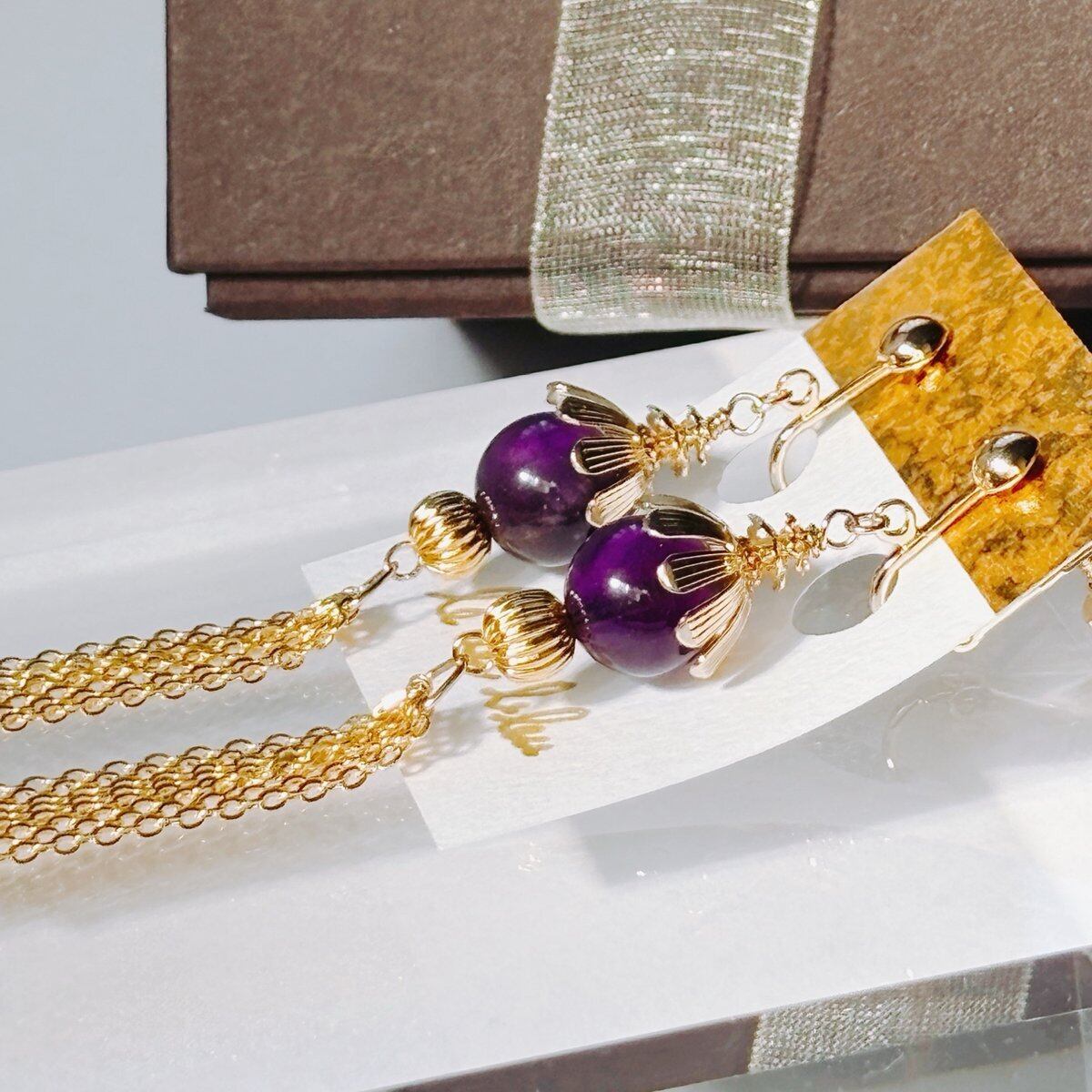普段使いはもちろん、特別な日にもふさわしいアイテムです。アメジストの美しい紫色が、どんなスタイルにも上品に馴染み、あなたの個性を引き立ててくれます。揺れることで自然な動きを演出し、視線を惹きつけること間違いなしです。